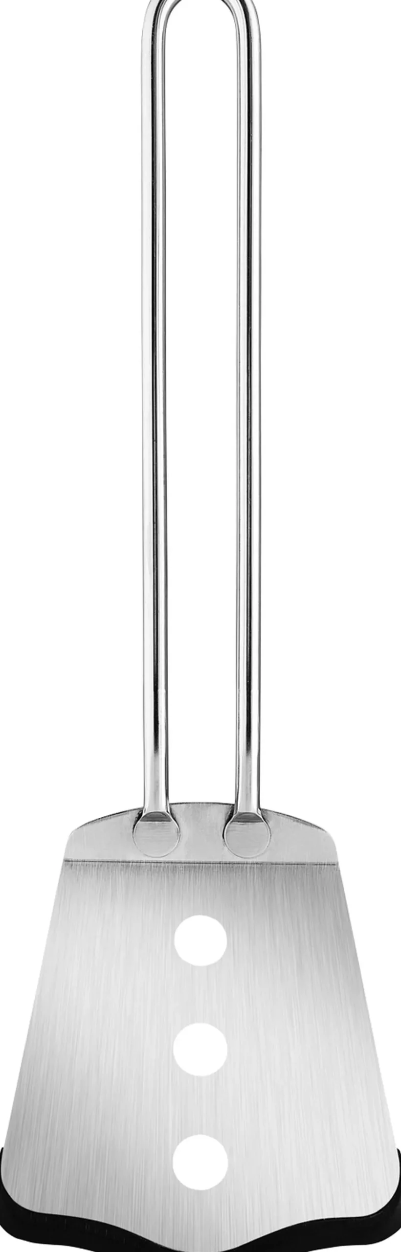 Spatlen er et uundværligt redskab i køkkenet – perfekt til at vende, røre, løfte og anrette. Den flade spids med vinklede kanter gør det nemt at glide ind under flade madvarer som pandekager, spejlæg og fiskefileter. Silikonespidsen gør spatlen skånsom mod overflader, så du undgår ridser og skader på dine pander og gryder. Den er fremstillet af rustfrit stål, kan modstå høje temperaturer og er noget nær uopslidelig. Spatlen tåler maskinopvask.