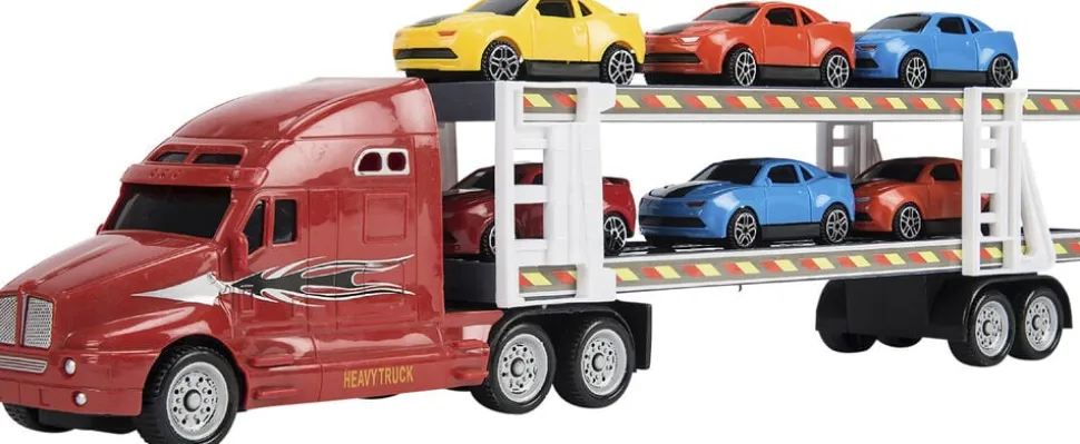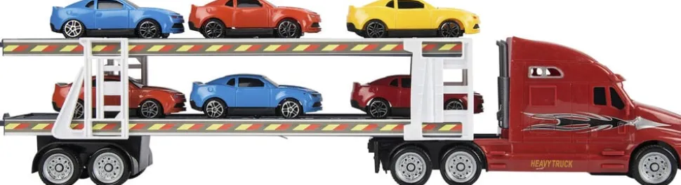 Autotransporter med 6 biler Med friktion I plast Skala 1:48