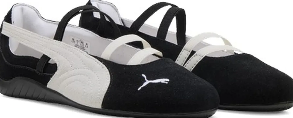 Ballerina fra Puma i en lækker ruskindskvalitet. Skoen har elastik på fronten, broderet logodetalje på den afrundede snude, en præget sål, de karakteristiske striber på yder- og indersiden samt en ‘Ortholite’-indersål, der sikrer den bedste komfort.