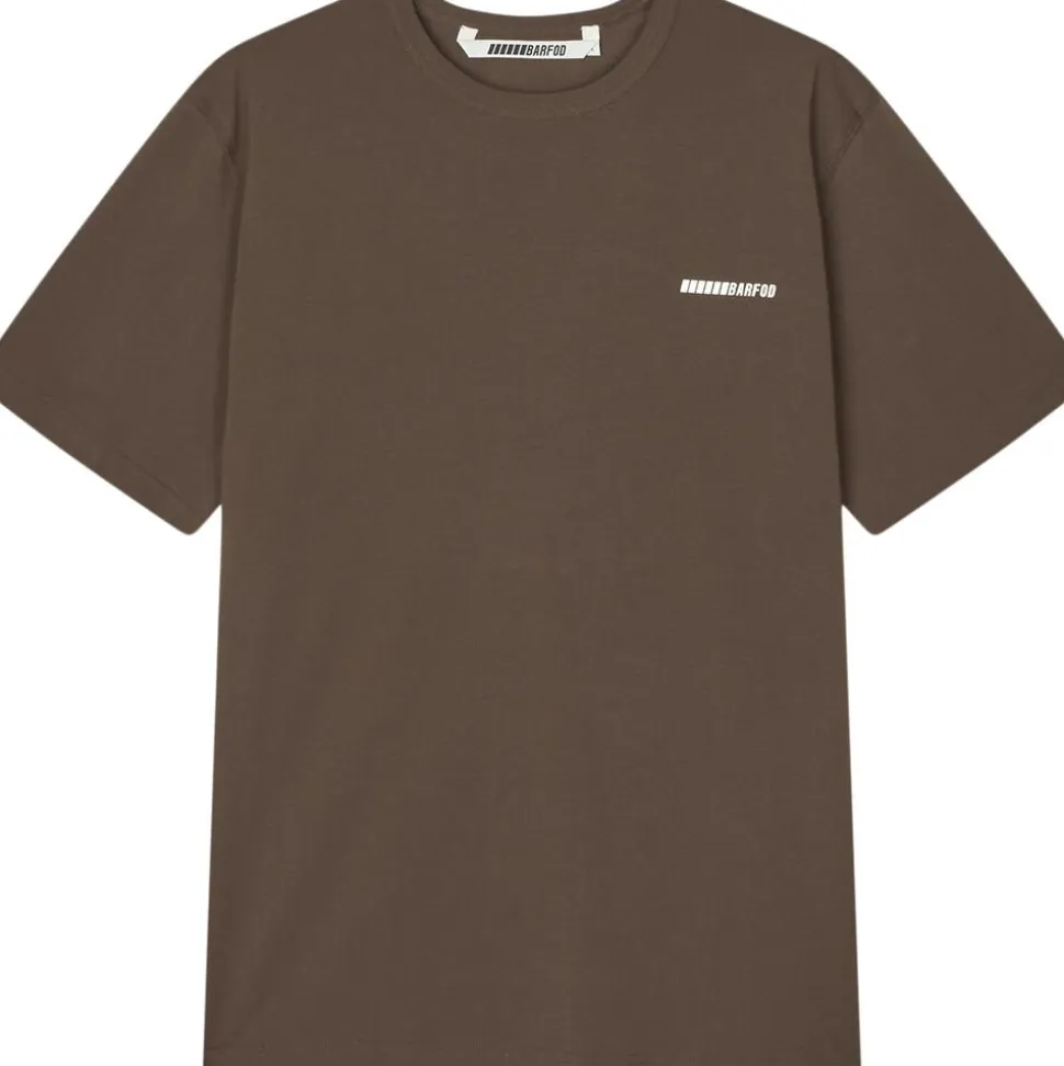 T-shirt fra Barfod i den blødeste kvalitet af 100% økologisk bomuld. T-shirten er enkel i modellen med rib i den runde halsudskæring, korte ærmer, en løs pasform samt logoprint på front og bag. En casual T-shirt af den bedste kvalitet. Mandlig model er 183 cm og bærer en størrelse large.