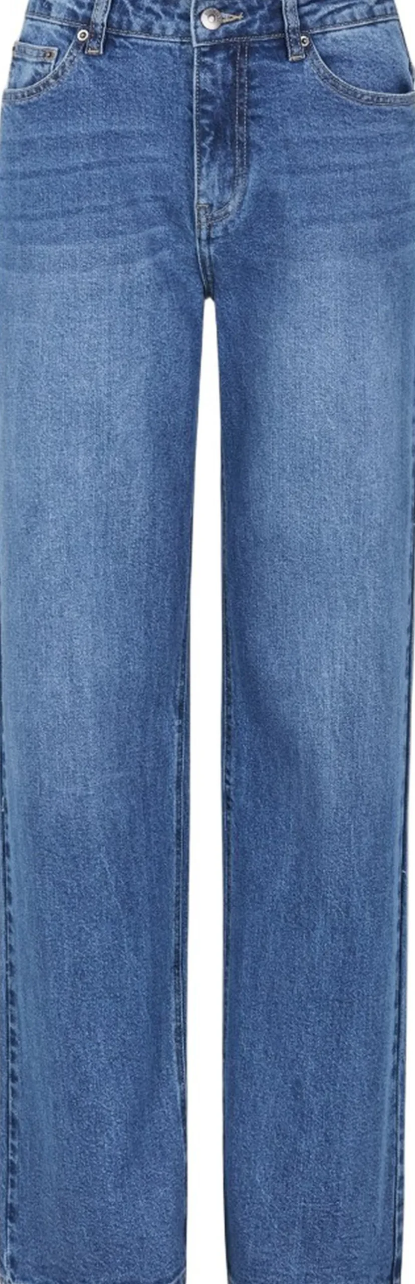Classic wide leg jeans With a regular fit, wide leg, and mid waist, these pants offer both comfort and versatility. Made with 5 pockets amd a zip fly. The inseam is 82 cm in all sizes The model is 174 cm and is wearing a size S – Regular fit – Wide leg – Mid waist – Zip fly – Five-pocket construction – ECOsistible