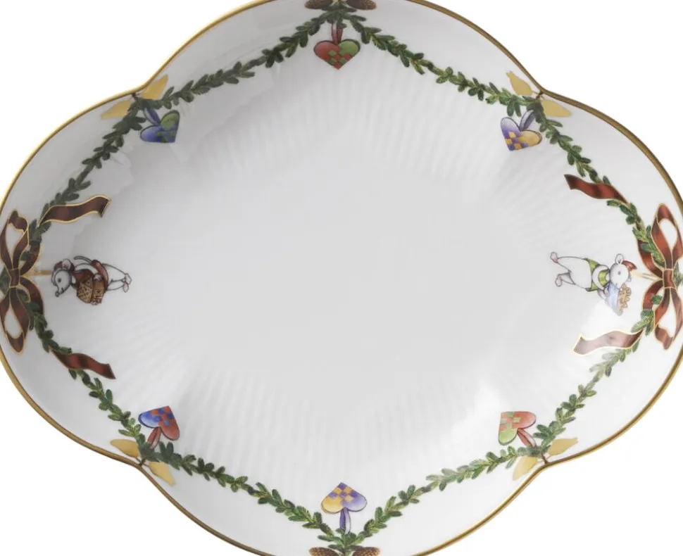 Det mindre fad i Stjerne Riflet Jul er skræddersyet til juletidens søde serveringer. Som enhver steldel i Stjerne Riflet Jul er fadet udsmykket med sit eget udvalg af julepynt med flettede julehjerter og småkager formet som mus.