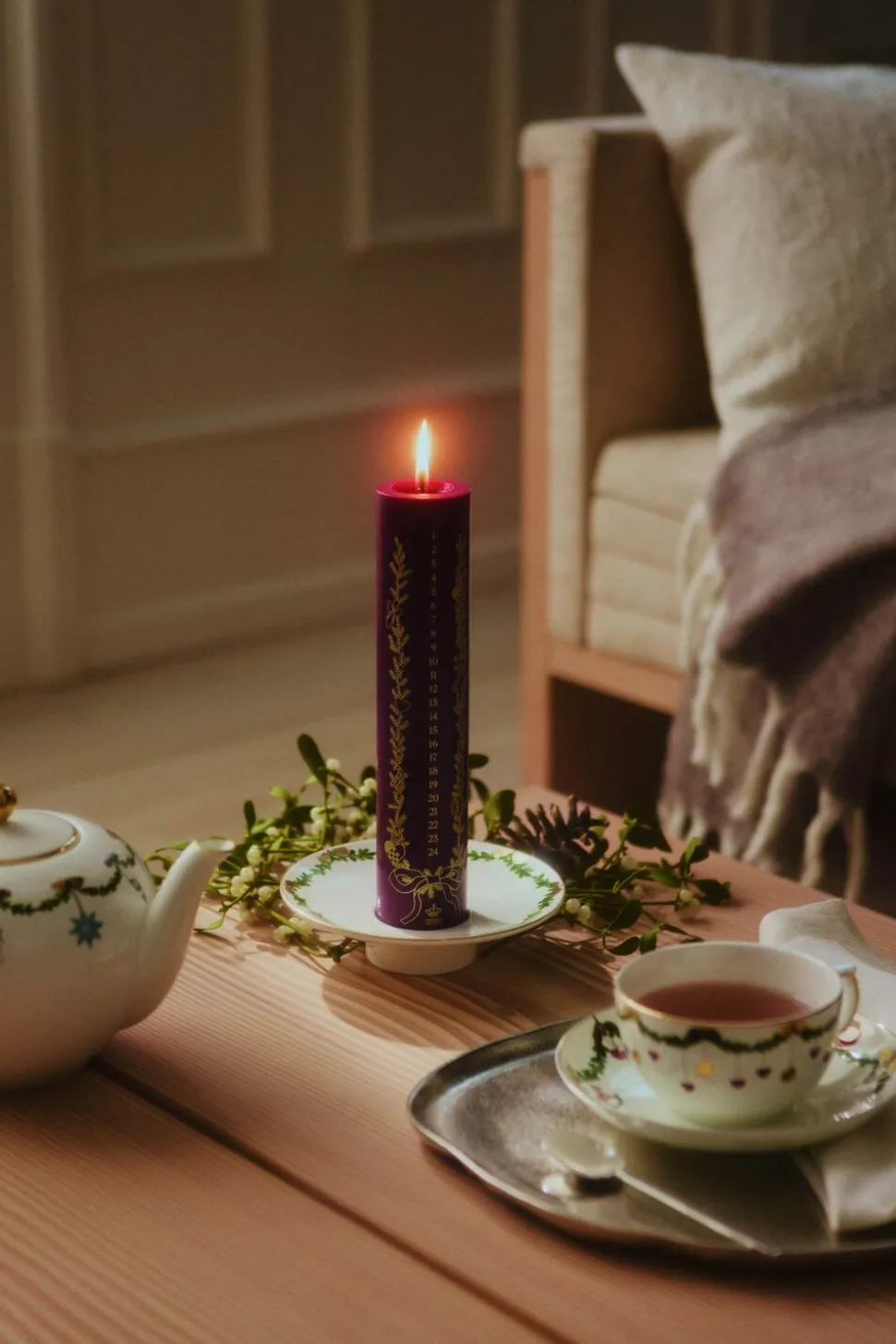 Tæl ned til juleaften med Royal Copenhagens kalenderlys, en af julens mest hyggelige traditioner. Lyset er elegant dekoreret i gyldne nuancer med stjerner og en granguirlande, pyntet med klassiske julemotiver, der spreder varme og glæde i hele december. Skab en stemningsfuld tradition med et lys, der forener æstetik og julens hygge.