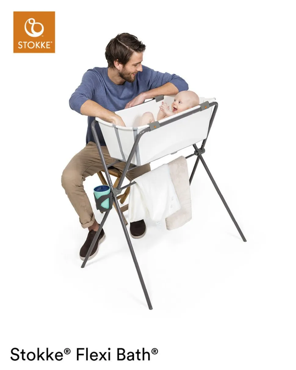 • Stokke Flexi Bath stativ, så badekarret kan komme op i højden. Mere skønsomt for ryggen på den der bader.