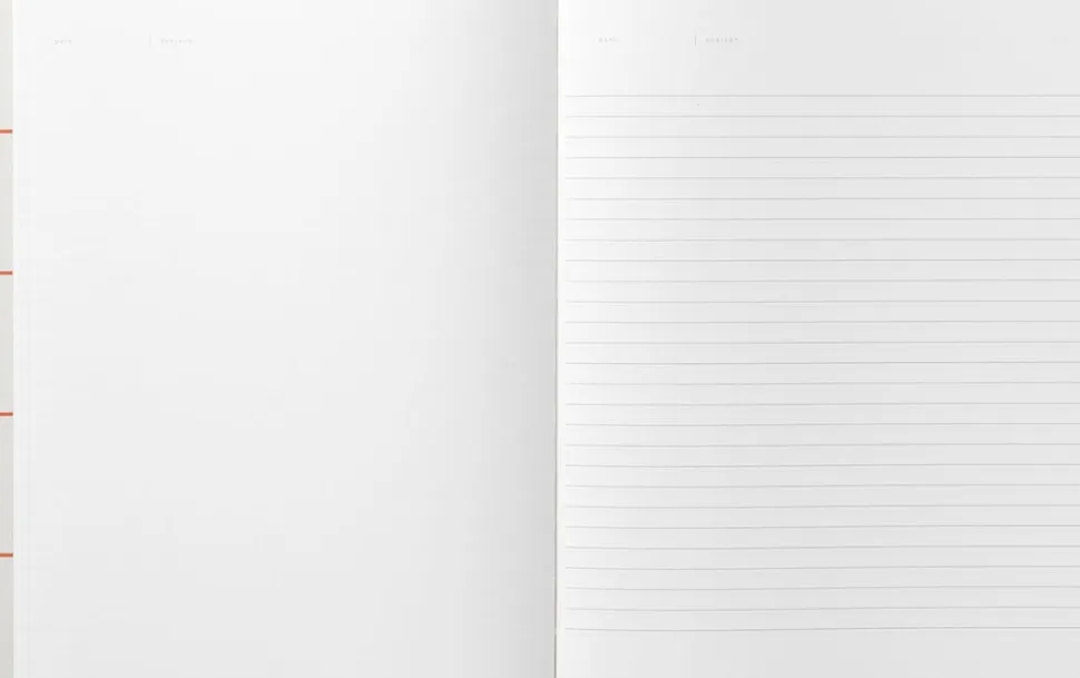 Softcover notesbog fra Notem Studio. Bogens ryg er syet og ikke fæstnet til coveret, hvilket giver en plan flade at skrive og tegne på. Indhold: 160 sider, blank venstreside, linjeret højreside. Farve: Lys Grå. Mål: 185 x 240 mm. Designet i Danmark, produceret i Europa.