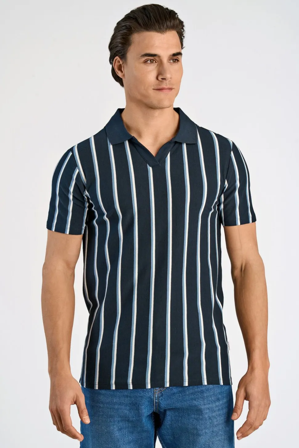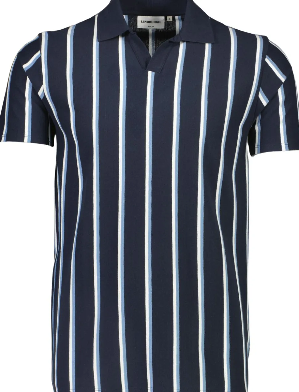 Moderne polo fra Lindbergh lavet i 100% bomuld. Stribet og med åben hals i stedet for med knapper.
