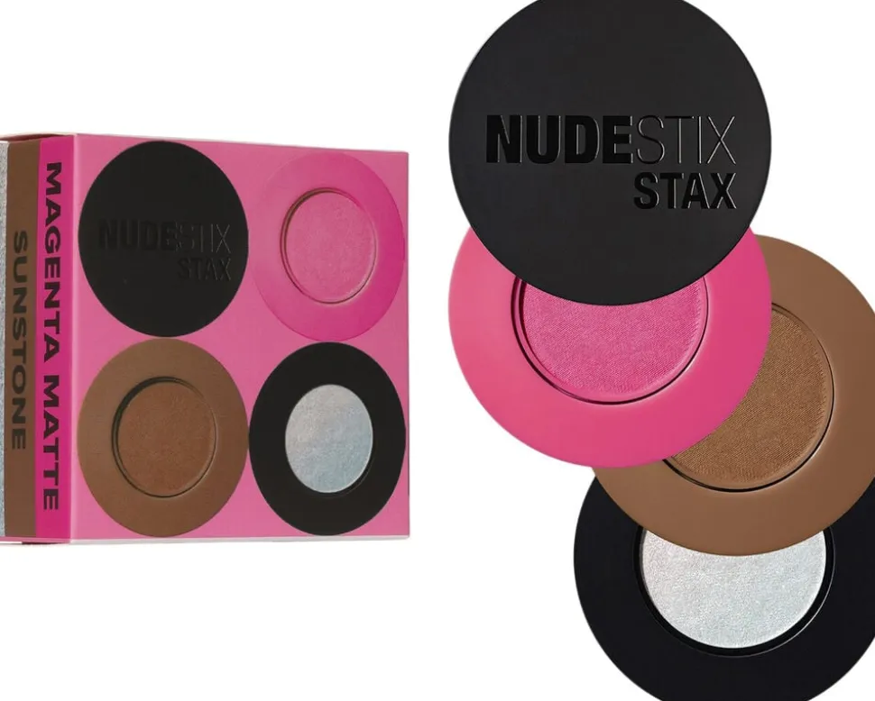 Uanset om du vil skabe et diskret nude-look eller en glamourøs aften ude, er dette sæt lige præcis det, du har brug for til en strålende blush og glød to go! Stax Blush Balm i farven Sunstone giver en varm, solkysset nuance til din teint, mens Magenta Matte giver et strejf ekstra af farve. Tilføj en strålende, iriserende glød med Stax Nude Eye Lights i Magic Aura.