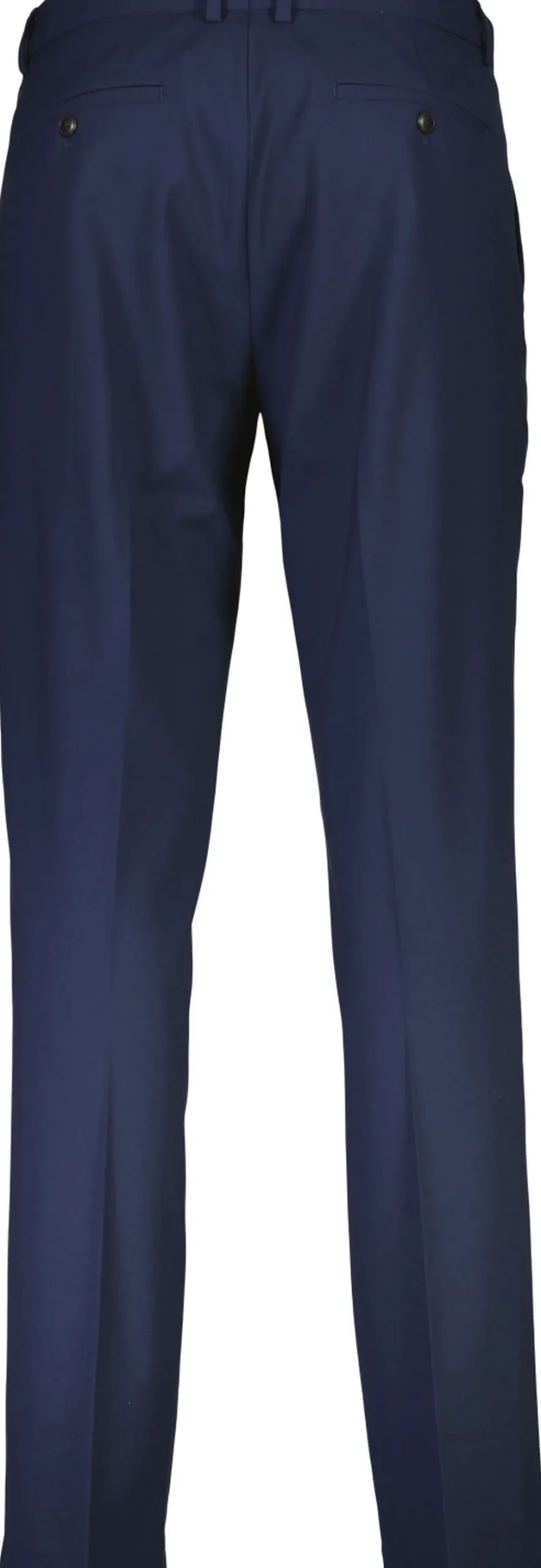 Klassiske habitbukser med pressefolder og paspolerede baglommer med knapper. Bukserne lukkes med knap og skjult lynlås.