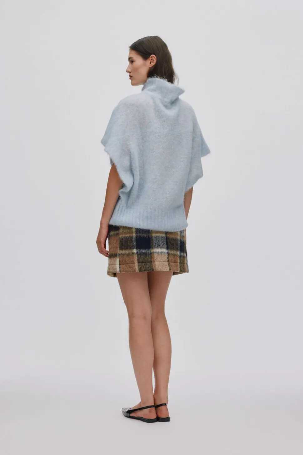 Oplev den lette elegance med Superlight Knit Tunic Top fra Rabens-Saloner. Denne tunika er designet til at give dig en afslappet, men stilfuld look, perfekt til både hverdagens gøremål og mere festlige anledninger. Med sin highneck og ærmeløse design er den ideel til lag-på-lag styling, så du kan skabe dit helt eget personlige udtryk.