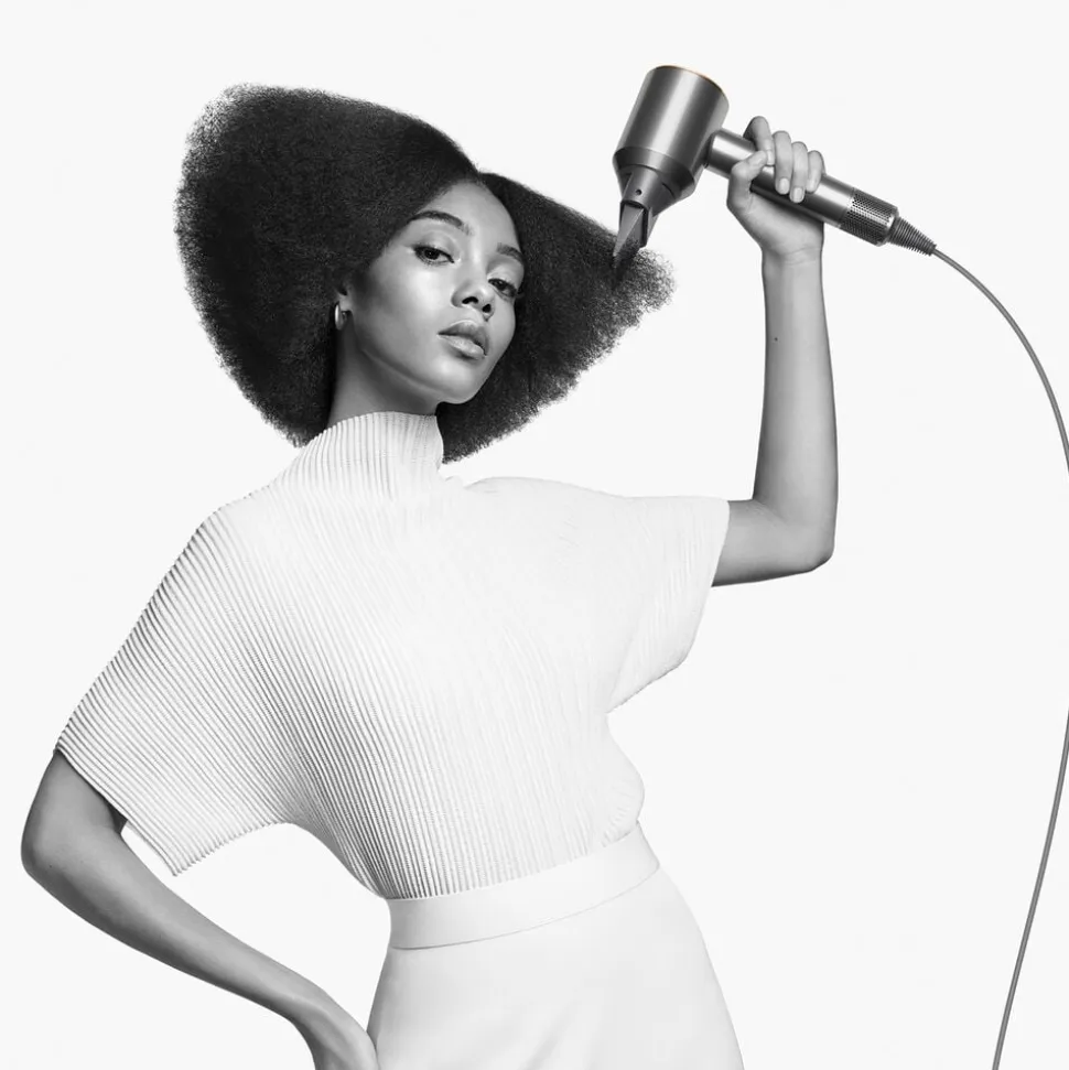 Den lille, kraftfulde digitale V9-motor snurrer med op til 100,000 o/m. Ved at kombinere dette med Air Multiplier-teknonologien produceres der en højtrykskerne af kontrolleret luft, der sikrer en hurtig tørring og præcis styling.