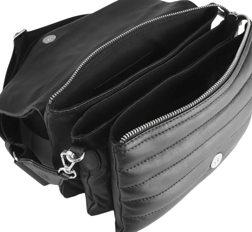 SusanaMBG Puffer Crossbody fra Markberg. Klassisk taske i skind med puffer look. Lukkes med magnet og lynlås. Inddelt i 3 rum indvendig. Lynlåslomme på bagsiden. Aftagelig og justerbar crossbody-strop. 100% bomuldsfor.