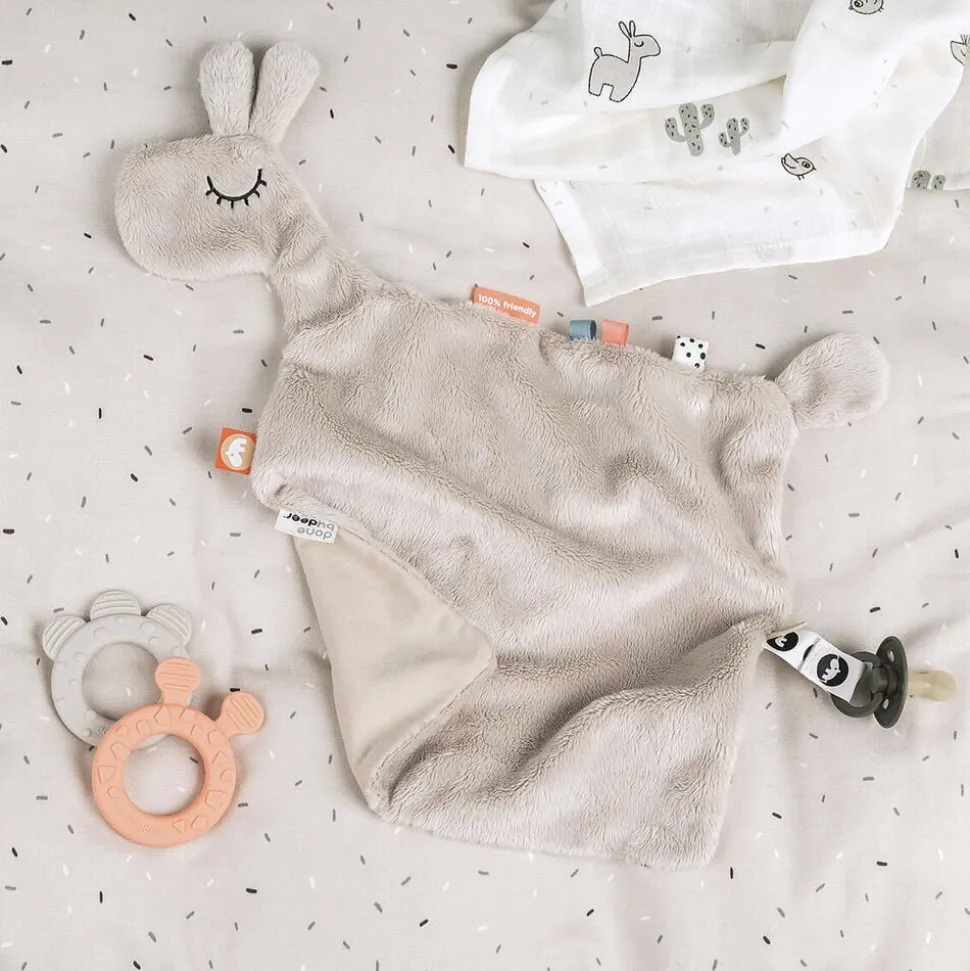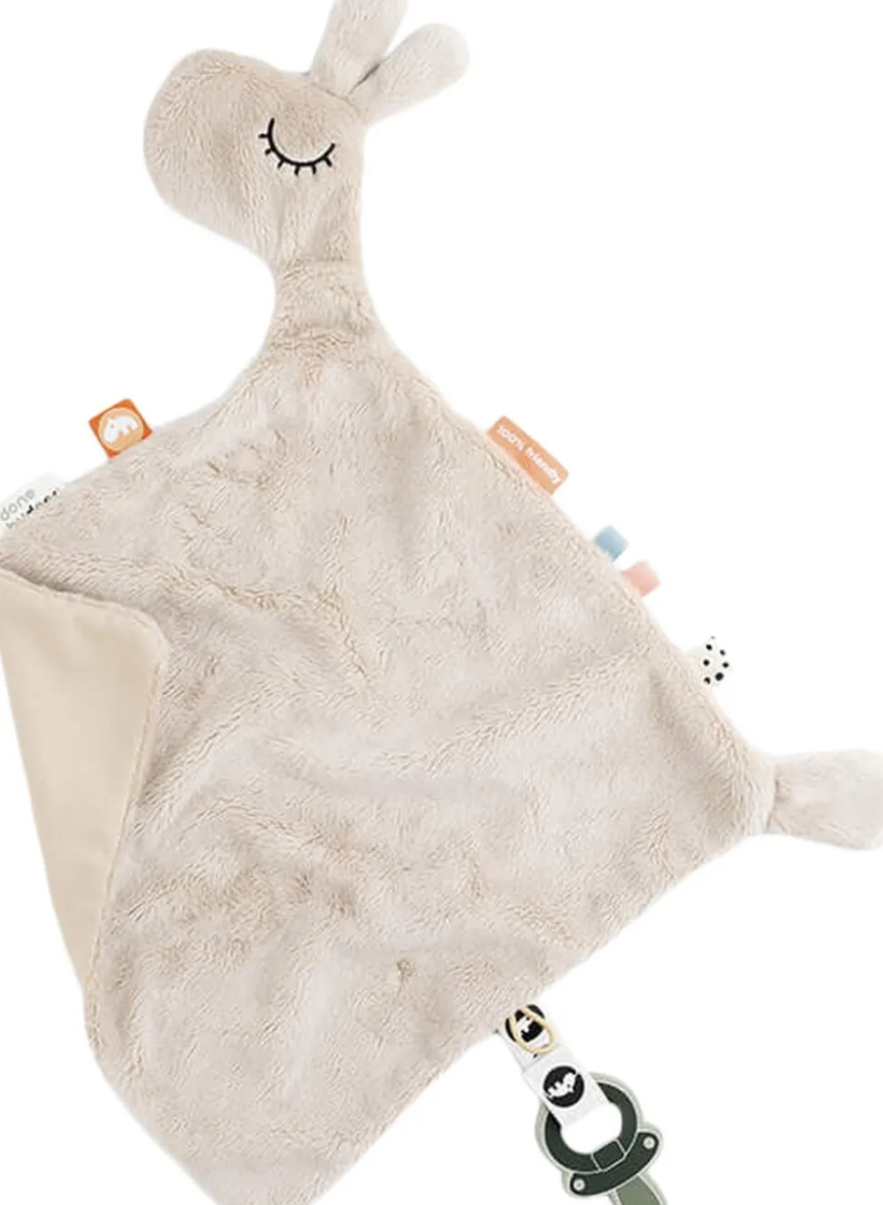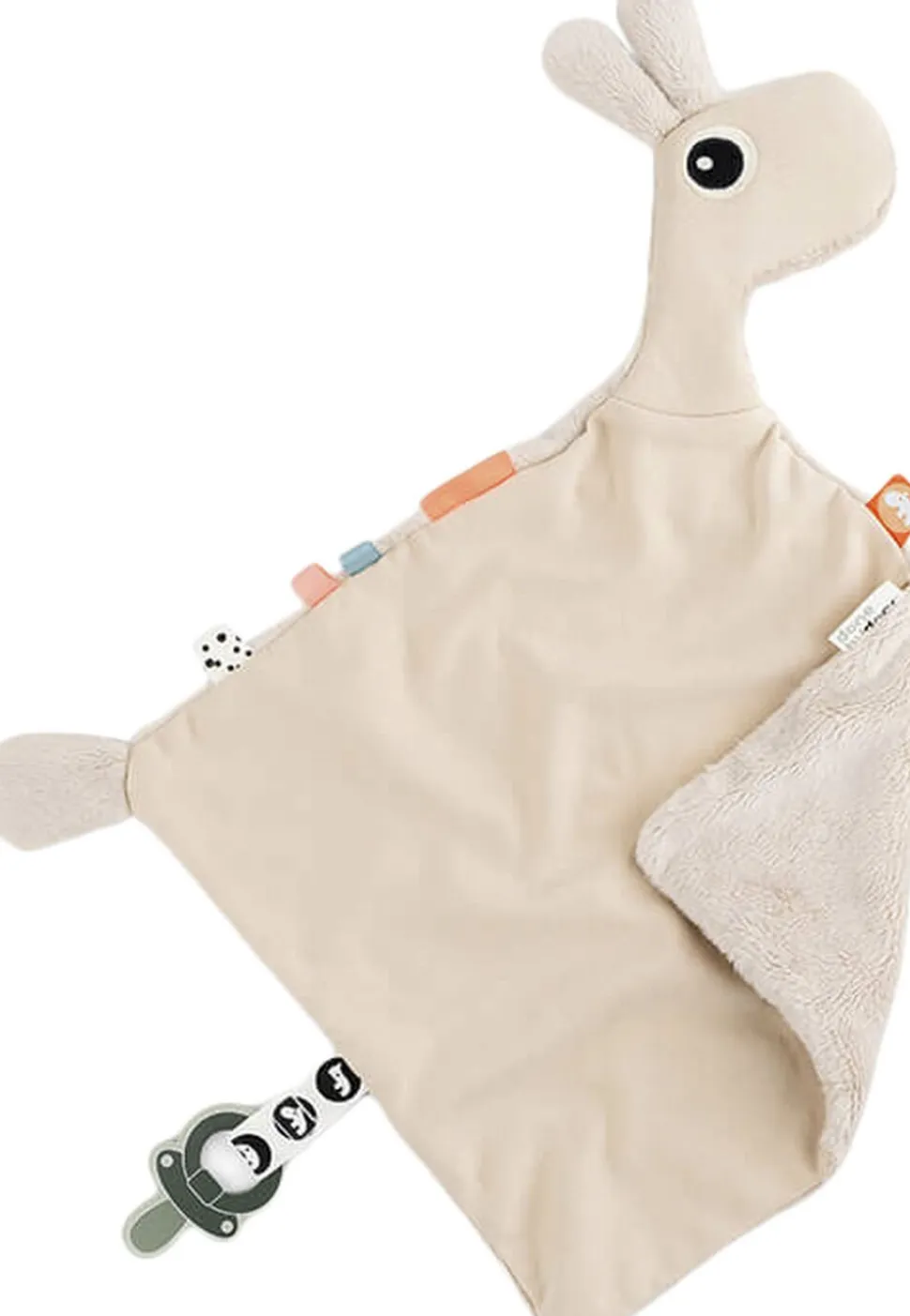 Lad din baby nusse med den hyggelige Lalee sutteklud. Den lille nusseklud er super blød og behagelig for din baby at røre ved, når turen går til drømmeland – eller en tryg ven når I besøger nye steder. Baby suttekluden er fyldt med sjove mærker og spændende teksturer klar til at blive udforsket. Den praktiske Velcro-strop gør det nemt at fastgøre sutter til nussekluden. Den hyggelige lama nusseklud har en lys, sandfarvet nuance og kan vaskes ved 30 grader i vaskemaskinen.