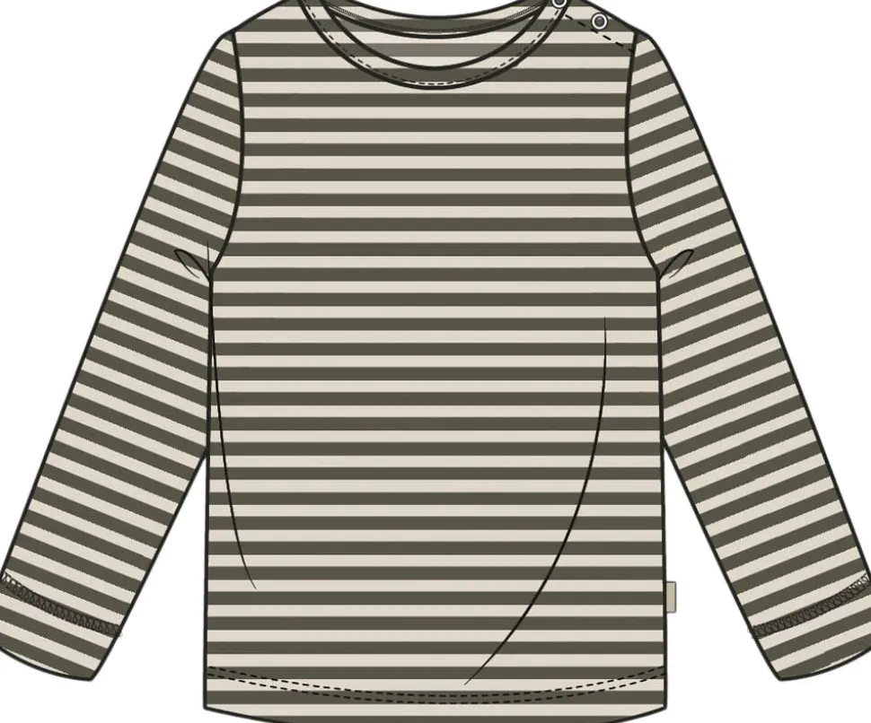 Langærmet bluse i vores klassiske stribede rib kvalitet. Str. 74-92 har trykknapper i skuldersømmen for nemt tøjskift. Str. 98-122 har ikke trykknapper i skuldersømmen. Materialet er blødt og meget strækbart, designet til komfort og leg. Produceret i Indien.