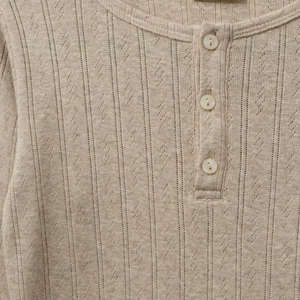 • Long-sleeved T-shirt. • Round neck with button closure. • Regular fit design. • Pointelle pattern