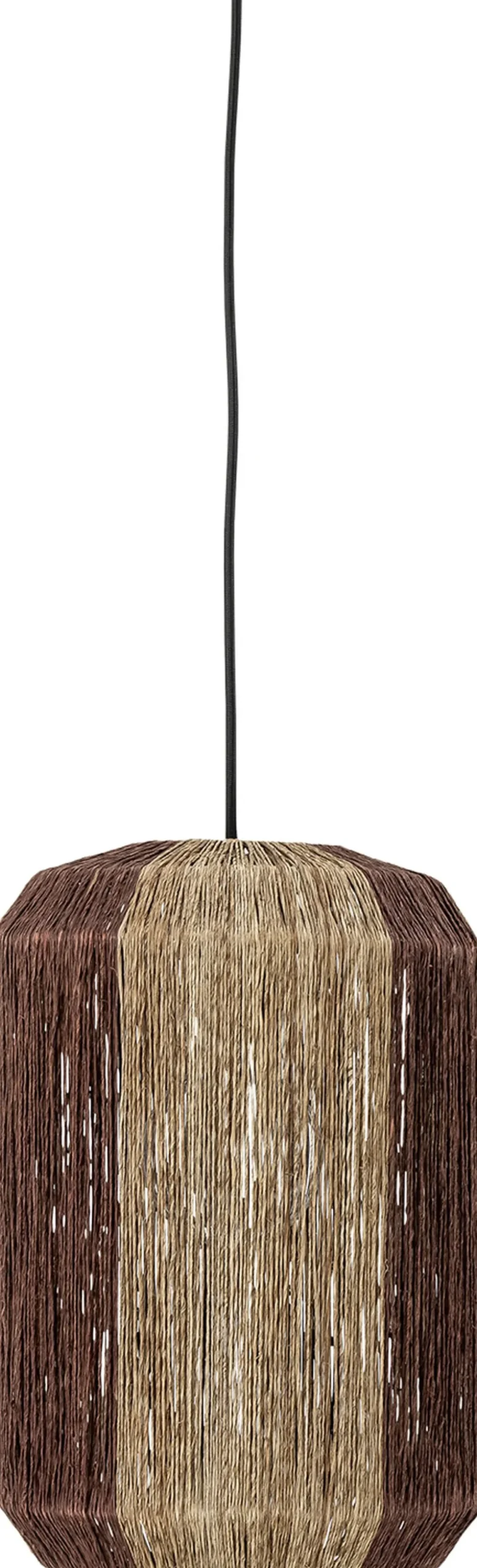 Tano Pendant Lamp fra Bloomingville er lavet af havgræs og jern i en smuk kontrast af lys og mørkebrun farve. Lampeskærmen er formet på en meget enkel og klassisk måde og vævet med naturlig havgræs, der skaber ikke kun en lampeskærm med naturens organiske egenskaber, men også skaber et interessant lysspil, når lampen er tændt.