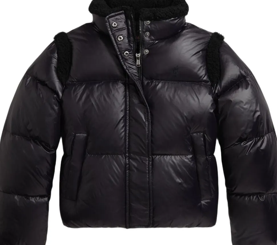 Denne jakke er et sødt valg til de kølige dage og forener en vandafvisende skal og 650-fyld-ned med en firkantet silhuet og teddy fleecekant