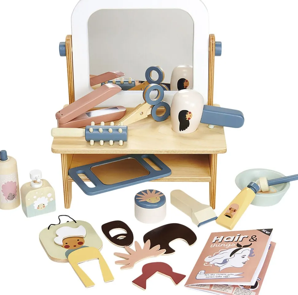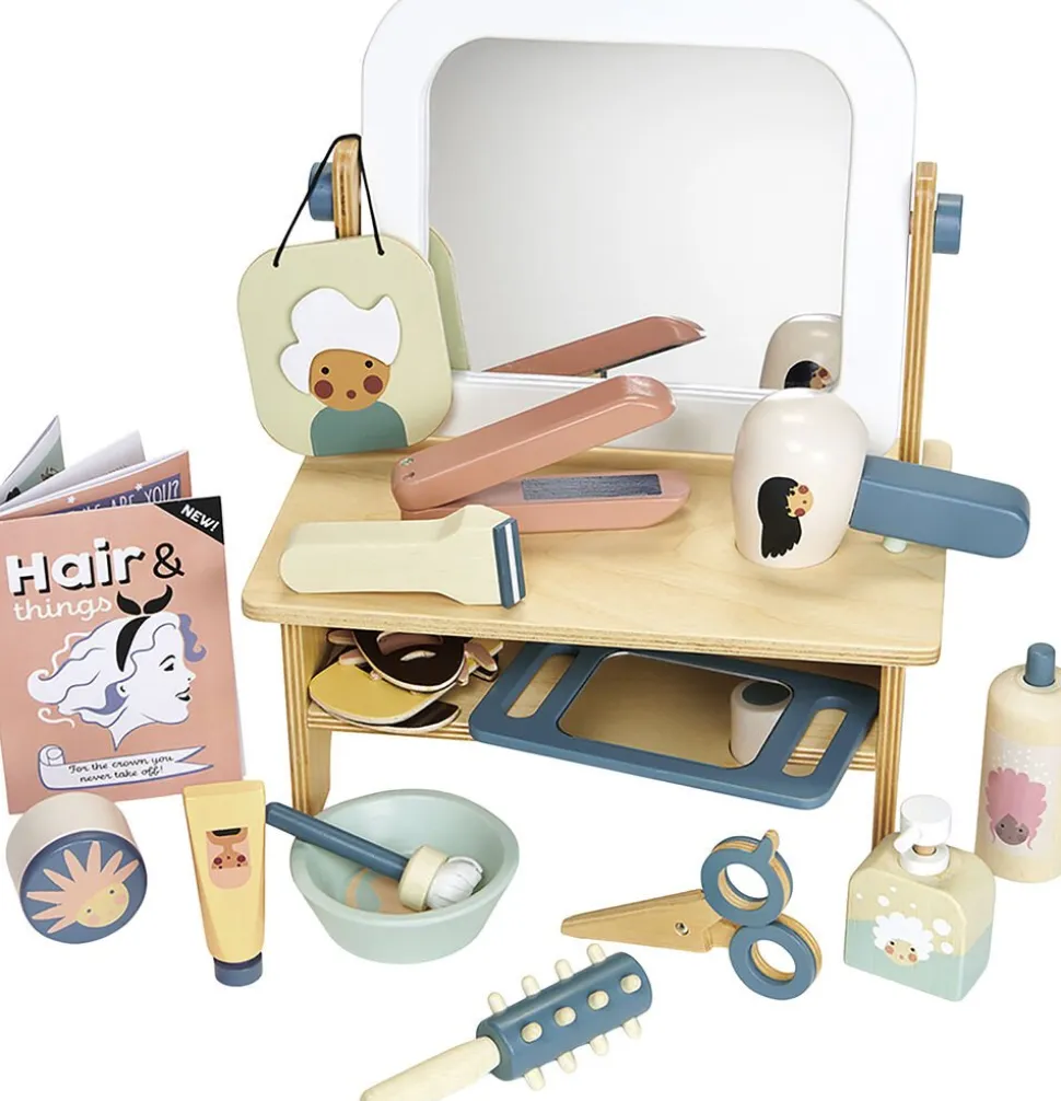 Rolleleg frisørsæt i træ.