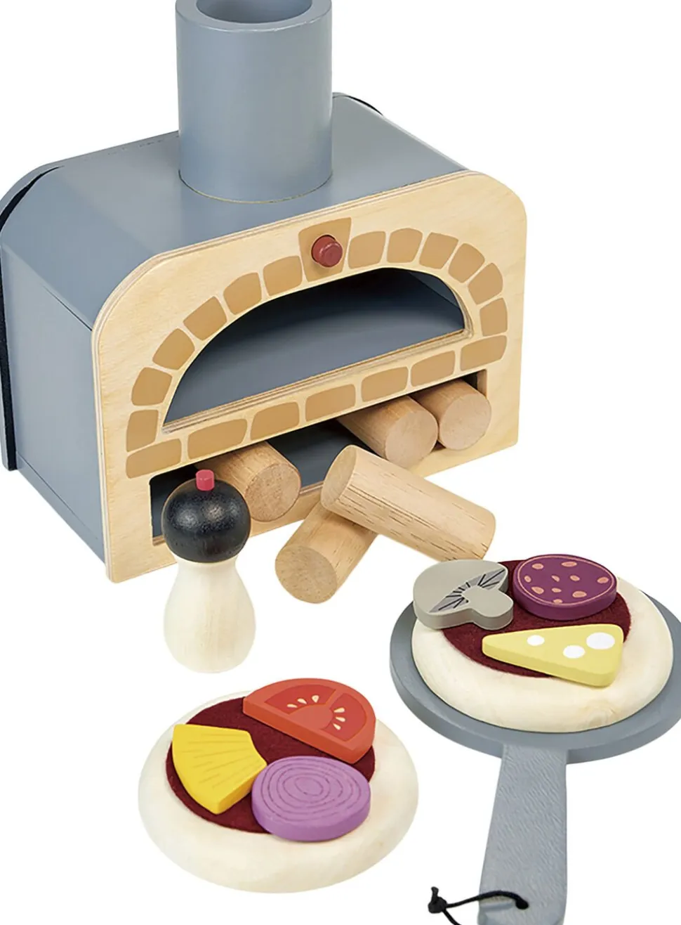 En praktisk pizzaovn med 5 brændeknuder til at fyre op til dit helt eget rolleleg pizzabageri i træ!