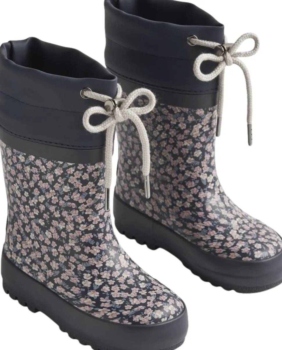 Uundværlige termo gummistøvler med højt skaft til dit barn. – Blødt uld- og genanvendt polyesterfoer – Højt skaft – Refleks – Wheat signatur print eller stribet Wheat’s termo gummistøvler er lavet i naturgummi og er en tro følgesvend, når det kommer til børn. Termo gummistøvlerne er foret med en kombination af uld og polyester for ekstra varme og fungerer perfekt i efterårs- og vintersæsonen. De har et simpelt look med Wheat signatur print eller striber samt et Wheat-logo bagpå, der desuden er en refleks. Termo gummistøvlerne har et bredt stykke vandtæt stof øverst, som kan strammes, så støvlerne sidder tæt omkring dit barns ben. Støvlerne har aftagelige indlægssåler, de er normale i størrelsen og er lette for dit barn at tage på. Anbefalet tillæg for vækst: 1-1,5 cm Indvendig måling: Størrelse 22 = 13,9 cm Størrelse 23 = 14,6 cm Størrelse 24 = 15,2 cm Størrelse 25 = 15,8 cm Størrelse 26 = 16,4 cm Størrelse 27 = 17,2 cm Størrelse 28 = 17,8 cm Størrelse 29 = 18,6 cm Størrelse 30 = 19,0 cm Størrelse 31 = 19,9 cm Størrelse 32 = 20,6 cm Størrelse 33 = 21,2 cm Størrelse 34 = 21,8 cm Størrelse 35 = 22,4 cm — Ydermateriale: Naturgummi Foring: 30% Naturuld, 70% Genanvendt PolyesterEssensielle termogummistøvler med høyt skaft og fleecefôr for barnet ditt. – Mykt polyesterfôr – Høyt skaft – Håndtegnet allover-trykk – Reflektor Wheat’s termogummistøvler er laget av naturgummi og er et essensielt plagg i barnets garderobe. Termogummistøvlene er foret med en kombinasjon av ull og polyester for ekstra varme og er perfekte for høst- og vintersesongen. De har et enkelt utseende med avtakbare såler og Wheat-logoen, som en reflektor, på baksiden. Termogummistøvlene har et bredt stykke vanntett stoff øverst som kan knytes rundt for at støvlene skal sitte tett rundt barnets ben. De er vanlig i størrelsene og er enkle for barnet ditt å gli på. Disse gummistøvlene er tilgjengelige med unike håndtegnede allover-trykk laget av Wheats interne designteam. Anbefalt voksetillegg: 1-1,5 cm Veil. indre mål: Størrelse 22 = 13,9 cm Størrelse 23 = 14,6 cm Størrelse 24 = 15,2 cm Størrelse 25 = 15,8 cm Størrelse 26 = 16,4 cm Størrelse 27 = 17,2 cm Størrelse 28 = 17,8 cm Størrelse 29 = 18,6 cm Størrelse 30 = 19,0 cm Størrelse 31 = 19,9 cm Størrelse 32 = 20,6 cm Størrelse 33 = 21,2 cm Størrelse 34 = 21,8 cm Størrelse 35 = 22,4 cm — Yttermateriale: Naturgummi Fôr: 30% Naturlig ull/70% Resirkulert polyester