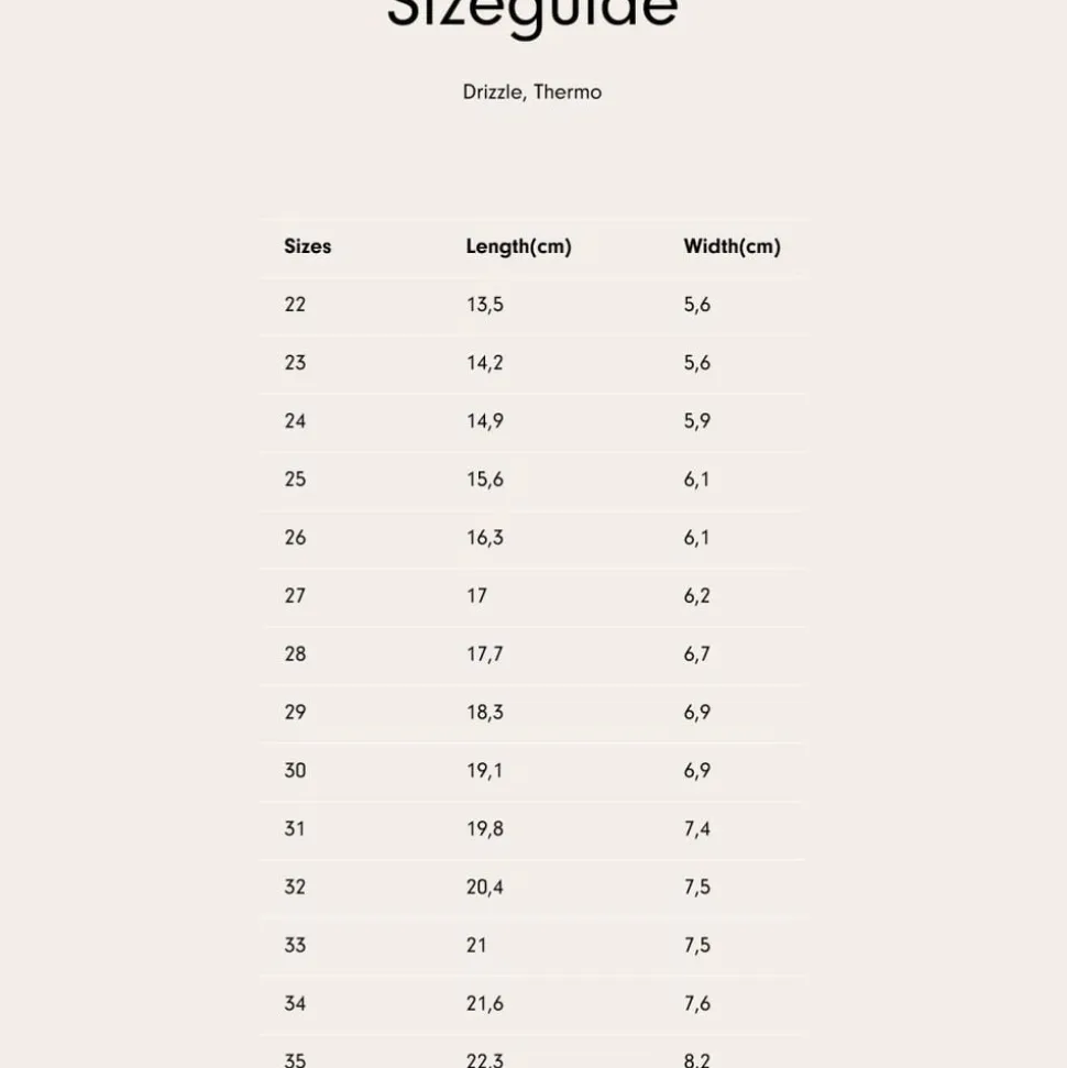 Uundværlige termo gummistøvler med højt skaft til dit barn. – Blødt uld- og genanvendt polyesterfoer – Højt skaft – Refleks – Wheat signatur print eller stribet Wheat’s termo gummistøvler er lavet i naturgummi og er en tro følgesvend, når det kommer til børn. Termo gummistøvlerne er foret med en kombination af uld og polyester for ekstra varme og fungerer perfekt i efterårs- og vintersæsonen. De har et simpelt look med Wheat signatur print eller striber samt et Wheat-logo bagpå, der desuden er en refleks. Termo gummistøvlerne har et bredt stykke vandtæt stof øverst, som kan strammes, så støvlerne sidder tæt omkring dit barns ben. Støvlerne har aftagelige indlægssåler, de er normale i størrelsen og er lette for dit barn at tage på. Anbefalet tillæg for vækst: 1-1,5 cm Indvendig måling: Størrelse 22 = 13,9 cm Størrelse 23 = 14,6 cm Størrelse 24 = 15,2 cm Størrelse 25 = 15,8 cm Størrelse 26 = 16,4 cm Størrelse 27 = 17,2 cm Størrelse 28 = 17,8 cm Størrelse 29 = 18,6 cm Størrelse 30 = 19,0 cm Størrelse 31 = 19,9 cm Størrelse 32 = 20,6 cm Størrelse 33 = 21,2 cm Størrelse 34 = 21,8 cm Størrelse 35 = 22,4 cm — Ydermateriale: Naturgummi Foring: 30% Naturuld, 70% Genanvendt Polyester
