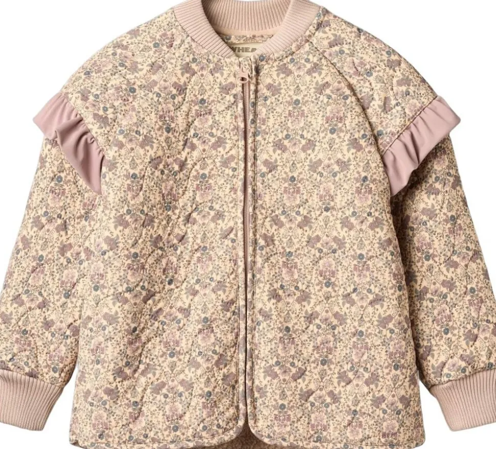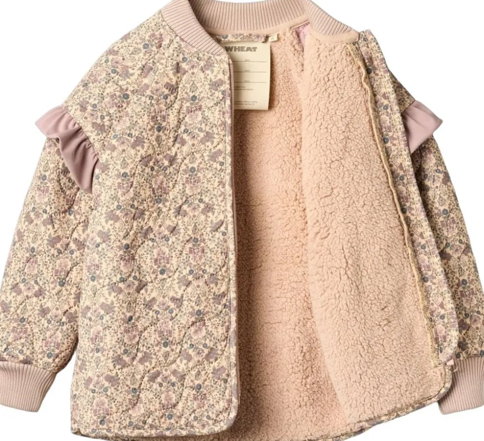 Termojakke med print, flæsedetaljer og blødt plysfoer til børn. – Ribkrave – Ribmanchetter – Åbne sidelommer i sidesømmen – Raglanærmer – Påsyede flæser på skuldrene – Lynlås med hagebeskytter – Kantbånd langs lynlåsen – Flaglabel i siden – Foret krop med blødt plys – Refleksbadge bagpå Termotøj til børn er en sand hverdagsfavorit. Det bløde og lette materiale gør det behageligt for barnet at bevæge sig og lege i. Termojakken er fremstillet i 100% genanvendt polyester og kan bruges som et lag indenfor eller som praktisk overgangsovertøj udendørs. Jakken er ikke vandtæt, men har en vandafvisende overflade og kan godt modstå let fugtigt vejr. Termojakken er ideel i overgangsperioder, hvor barnet har brug for let overtøj, eller som et ekstra lag under regntøj eller teknisk overtøj på køligere dage. — – 3-lags materiale for ultimativ isolering – Vandafvisende (ikke vandtæt) – Standard 100 by OEKO-TEX® – BIONIC FINISH ECO (Bio finish) – PFC-fri (Fri for perfluorerede stoffer) – Produktet er GRS-certificeret (Global Recycled Standard) — – 100% Genanvendt polyester – Plysfoer: 100% Genanvendt polyesterNy termojakke med volanger og trykk for barn. – Ribbestrikket krage – Ribbet mansjett – Åpen lomme i sømsiden – Volanger på skuldrene – Senkede skuldre – Glidelås med hakebeskyttelse – Reflekser Termobekledning for barn er en ekte hverdagsfavoritt, da det myke og lette materialet gjør det behagelig å bevege seg og leke i. Termojakken er produsert i 100% resirkulert polyester og kan brukes som et koselig lag innendørs og som praktisk overgangsyttertøy. Den er ikke vanntett, men vannavstøtende. Termojakken kan enkelt styles med matchende termobukser eller du kan mikse og matche med en av våre andre termobukser i ensfargede eller mønstrede varianter for å fullføre antrekket. Den er flott for mellom sesongene, når barnet ditt trenger noe lettere yttertøy eller som et ekstra lag under regntøy eller teknisk yttertøy på kaldere dager. — – 3-lags materiale for ultimat isolasjon – Vannavstøtende (ikke vanntett) – Standard 100 by OEKO-TEX® – Fluorfri vann- og smussavvisende finish (BIONIC-FINISH® ECO) – PFC-fri (Fri for per- og polyfluorerte kjemikalier) – GRS-sertifisert (Global Recycled Standard) — – 100% Resirkulert polyester – Plysfôr: – 100% Resirkulert polyester