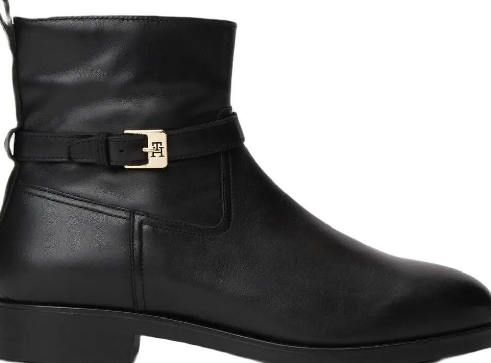 Disse smarte MC-inspirerede ankelstøvler er fremstillet af glat læder med et poleret spænde med et TH-monogram for signaturstil.