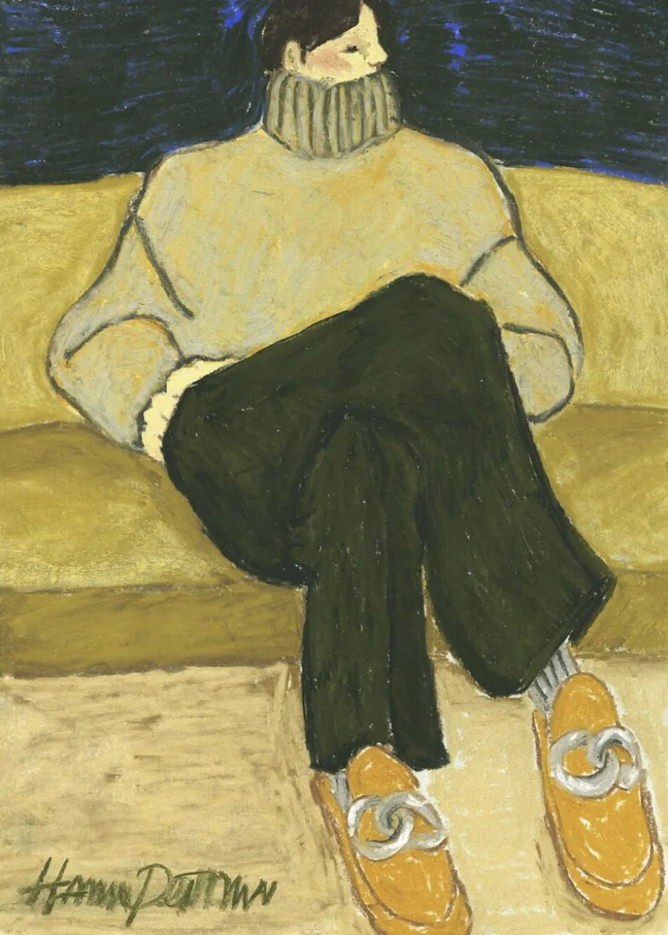 Giv din væg et unikt og sofistikeret udtryk med Fashion Diva 02, skabt i samarbejde mellem The Poster Club og kunstneren Hanna Peterson. Denne kunstplakat udstrler elegance og afslappet luksus gennem en charmerende illustration af en stilfuld person iført en oversized sweater og trendy sko.