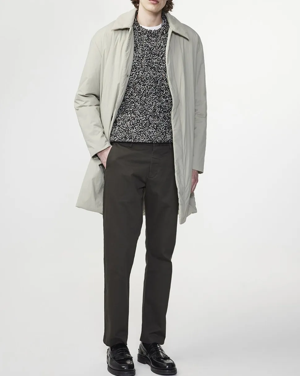 Theo er en chino i hjertet, men med de formelle elementer i en kjolebuks. Den er fremstillet i BCI-fremstillet børstet bomuld fra den italienske mølle Progetto Uno. Disse alsidige bukser med mellemhøj talje har en indsnævret pasform. Den er afsluttet med en skarp fold ved benet og usynlig oplægning