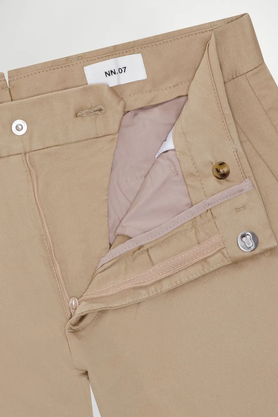 Theo er en chino i hjertet, men med de formelle elementer i en kjolebuks. Den er fremstillet i BCI-fremstillet børstet bomuld fra den italienske mølle Progetto Uno. Disse alsidige bukser med mellemhøj talje har en indsnævret pasform. Den er afsluttet med en skarp fold ved benet og usynlig oplægning