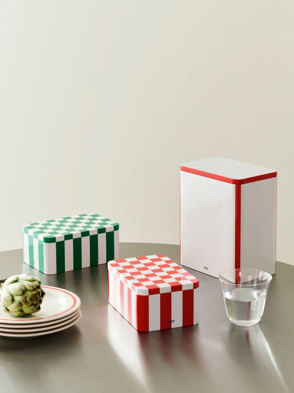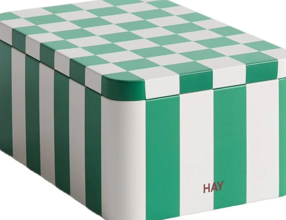 HAYs Tin Containers are a collection of functional and decorative storage boxes featuring colourful graphic patterns. The lid and container fit smoothly together, creating a sleek design that is ideal for dry food storage. Available in a wide assortment of sizes, shapes, and designs, the Tin Containers can be displayed decoratively on shelves or tables around the home, making them perfect for storing and organising various items.