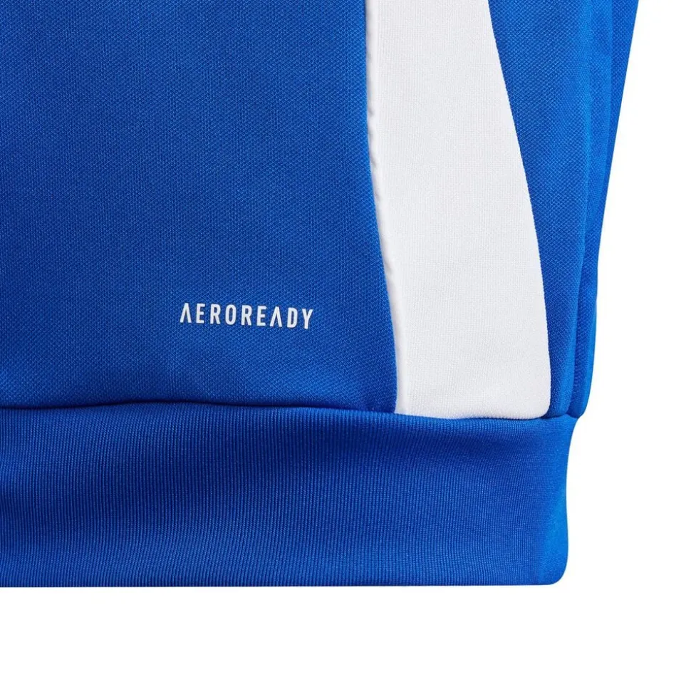 adidas Tiro 24 Full Zip Trænings Trøje er designet til seriøse atleter, der kræver både komfort og funktionalitet. Med AEROREADY teknologi holder den dig tør ved effektiv fugttransport. Den tætsiddende pasform kombineret med lange ærmer og integrerede tommelhuller sikrer optimal bevægelsesfrihed og ekstra dækning ved kolde træninger. Den høje krave med 1/4 lynlås giver justerbar ventilation, mens det genanvendte polyester materiale bidrager til bæredygtighed. Perfekt til fodbold og træning, hvor performance og stil går hånd i hånd. Opgrader din træningsgarderobe med denne alsidige og miljøbevidste trøje fra adidas.