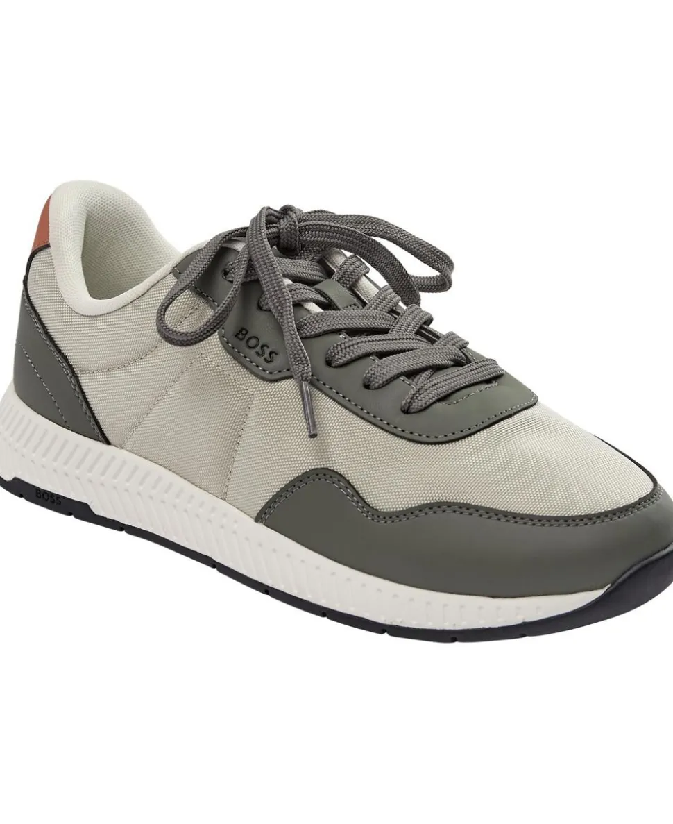 Disse sneakers fra BOSS Menswear har logodetaljer og syninger med signaturstribe og tilføjer et karakteristisk touch til hverdagslooket. Blandede overdele i glatte stoffer med struktur.