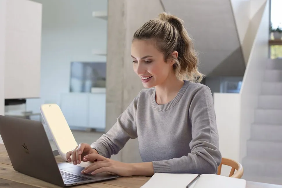 De mørke måneder kan påvirke både humør, energiniveau og produktivitet. TL 35 dagslys og lysterapilampe kan hjælpe dig godt gennem vintermånederne og har dokumenteret effekt ved lettere vinterdepression symptomer som: nedtrykthed, lavt energi niveau og manglede drive. Lampen er multifunktionel, da den kan bruges til flere faser i døgnet. Du får simulering af dagslys med tre lysfaser: terapi, aktivitet og afslapning. Lysterapi: 10. 000 Lux ved 13 cm, 6500 Kelvin. Lysterapi kan bruges til at mindske symptomer, der kan opstå ved lysmangel i vinterhalvåret. Dette er fx symptomer som træthed, nedtrykthed og øget søvnbehov. Aktivitet: 4300 Kelvin Denne lysfase simulerer farvetemperaturen på det gennemsnitlige dagslys. Denne funktion er ideel at bruge, når du læser, arbejder eller anden aktivitet, hvor du skal koncentrere dig. Afslapning: 3000 Kelvin Dette bløde, varme lys er med til at understøtte overgangen fra dag til aften. Lyset giver signal til kroppen om, at det er aften og den dermed kan begynde at slappe af og gøre sig klar til at sove. Med denne lampe, får du altså støtte i hverdagen til alle faser af døgnet. Tag lampen med på fartenI designet er der lagt vægt på et slankt og moderne design, der ikke fylder meget (15,5 x 25 cm), og som nemt kan transporteres i det medfølgende sleeve. Lyset er LED og der er en CRI (Colour rendering index) på 90. Det betyder lampen simulerer dagslys med 90%. Der er timerfunktion, der giver behandlingstider fra 30-120 minutter. Du får 3 års garanti på produktet.