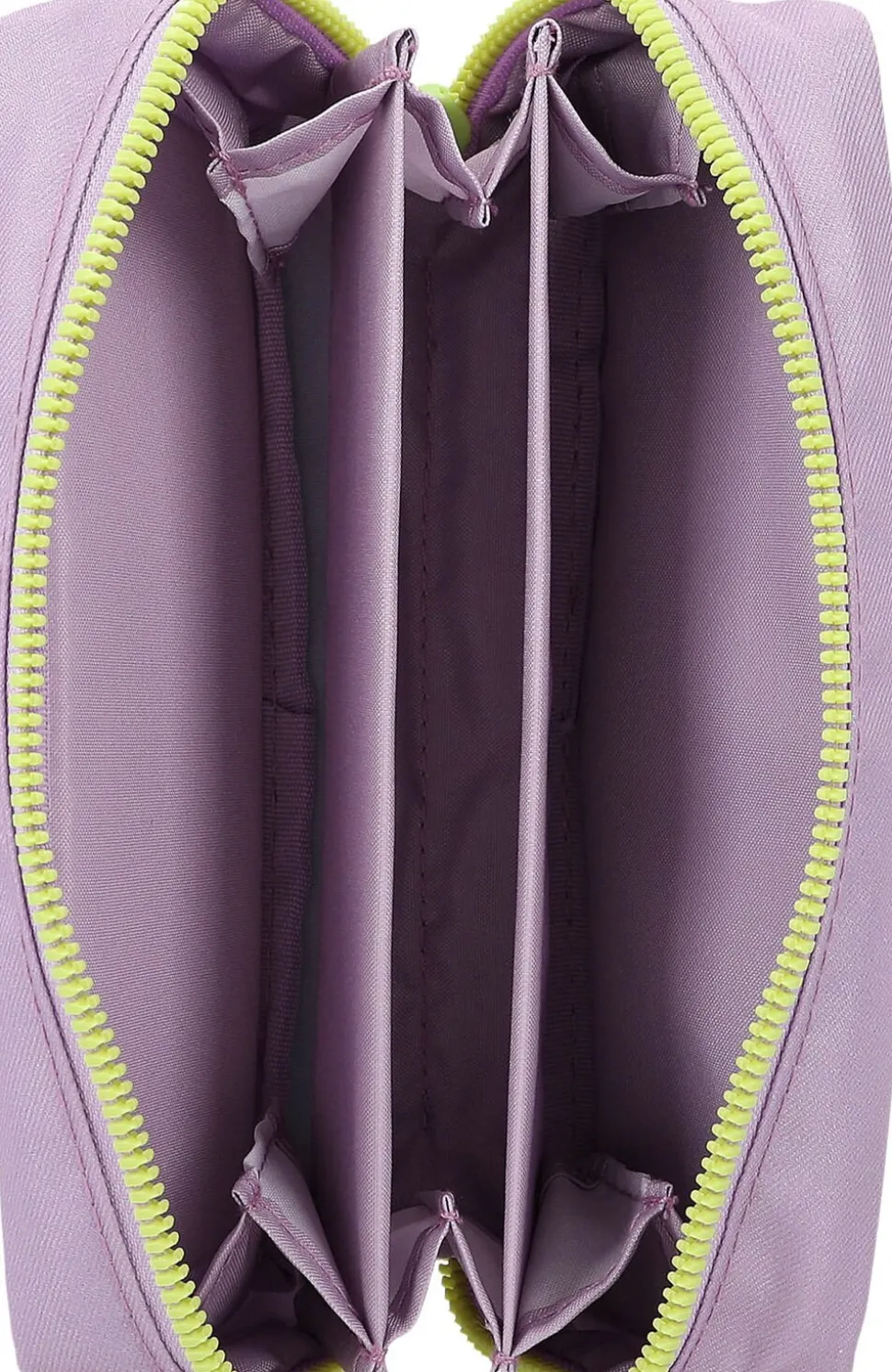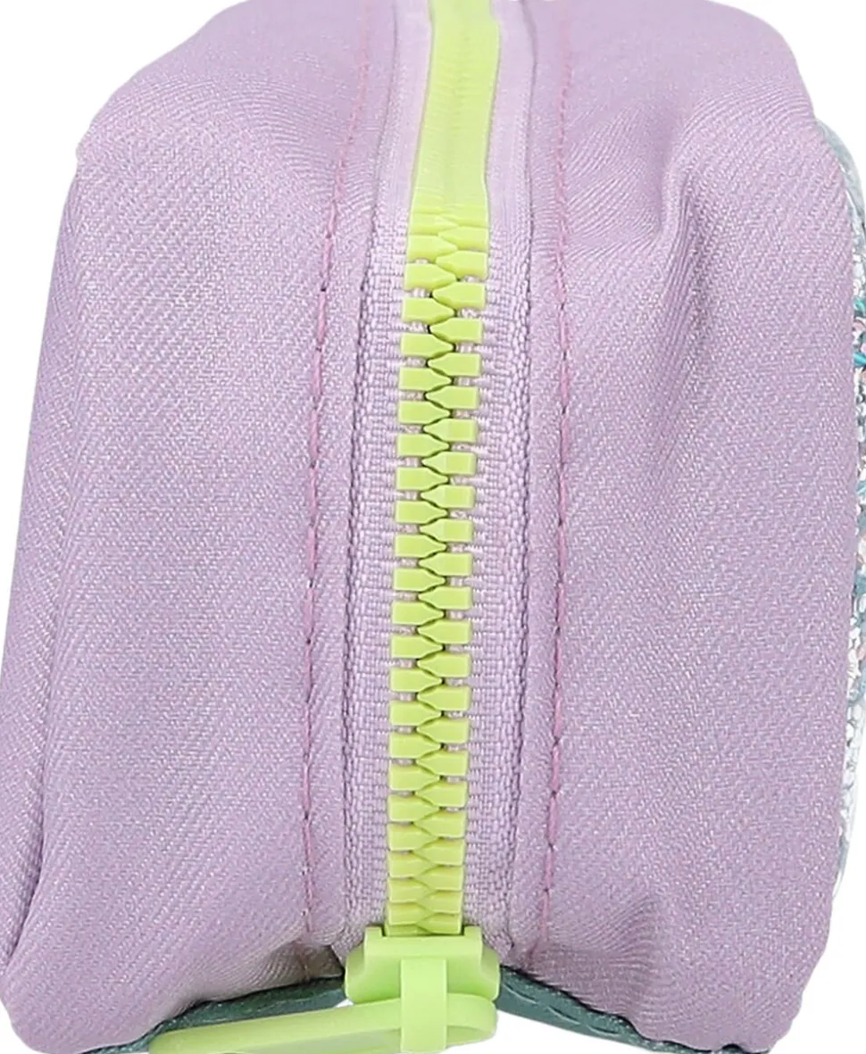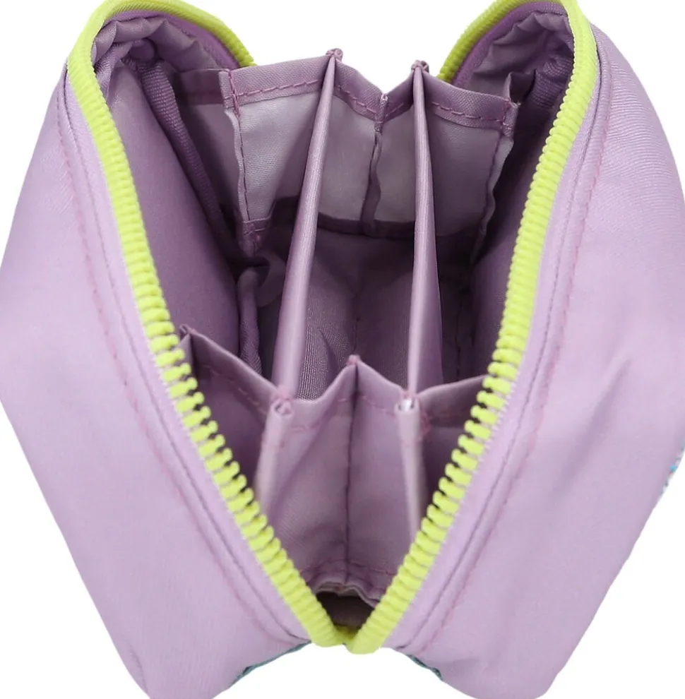 Fint penalhus i flot tiger trendigt design i petrol og lavendel farver med limegrønne detaljer og et fortryllende fe med tiger motiv på forsiden på en glitrende, metallisk baggrund.