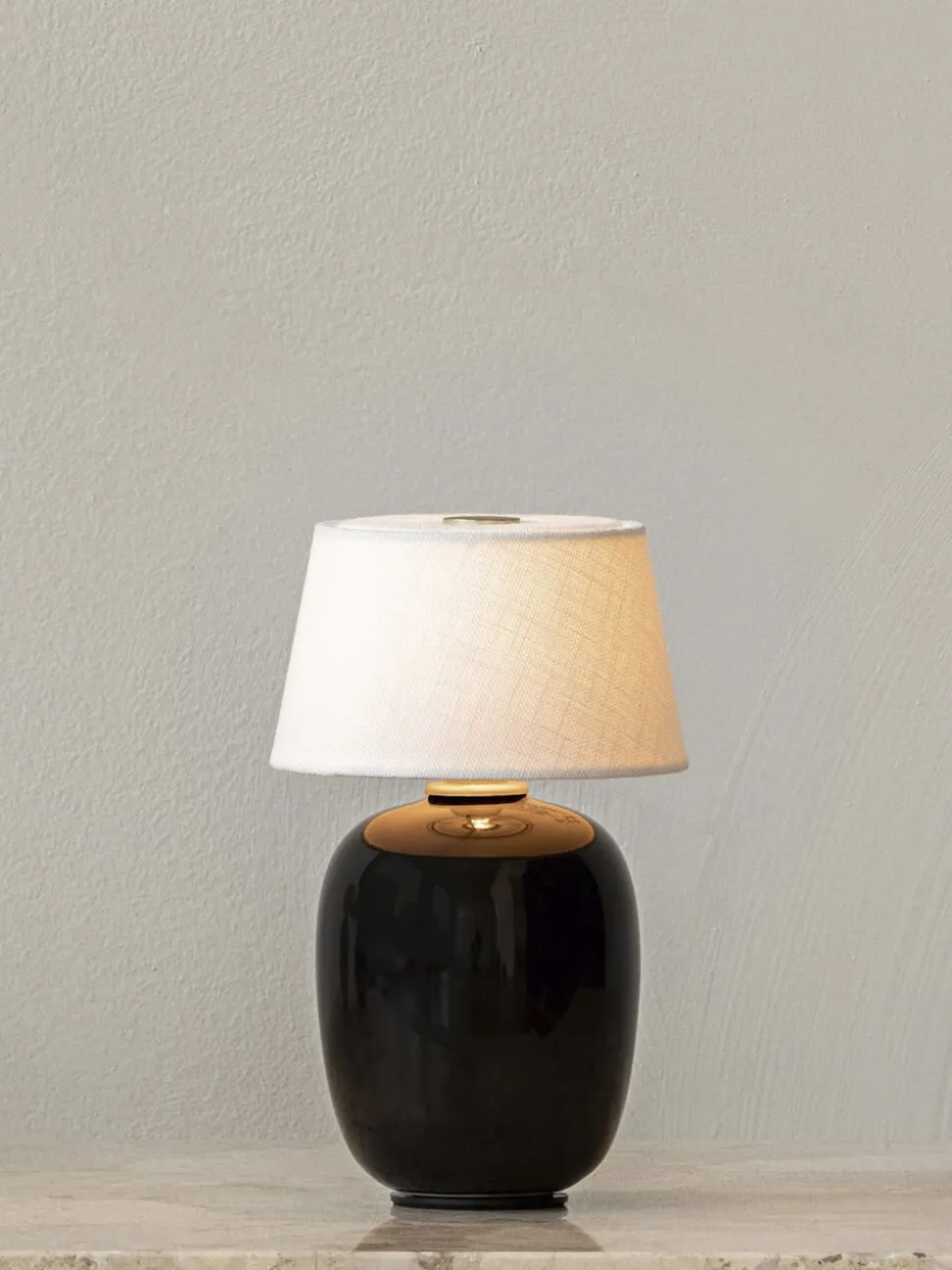 Torso Portable Table Lamp af Krøyer-Sætter-Lassen er en miniatureversion af deres populære Design i fuld størrelse af samme navn, som tager sit Design fra barndomshjem fyldt med skatte formet af den menneskelige hånd. Dette lille og hyggelige Design giver en følelse af intimitet til bordplader og erstatter behovet for stearinlys takket være det bløde, omgivende lys. Den har en messingbelagt knap på lærredsskærmen, så du kan tænde og slukke lyset med et tryk på en finger. En indbygget USB-oplader i basen sikrer nem opladning og er kompatibel med Audos-ladepladen, som genopliver flere enheder i et Single møde. For at bevare batteriets levetid skal du slukke for lampen under opladning og ikke lade den være tilsluttet, mens den er i brug. [dimensions-start] H: 20 cm, Ø: 12 cm [dimensions-end] [materials-start] Keramik, tekstil, stål, ABS [materials-end] [additional-resources-start] DOWNLOADS PRODUKTFAKTSHEET 2D /3D FILES ASSEMBLY INSTRUKTIONER [additional-resources-end] [vimeo-video-embed-start] https://vimeo.com/603855807 [vimeo-video-embed-end]
