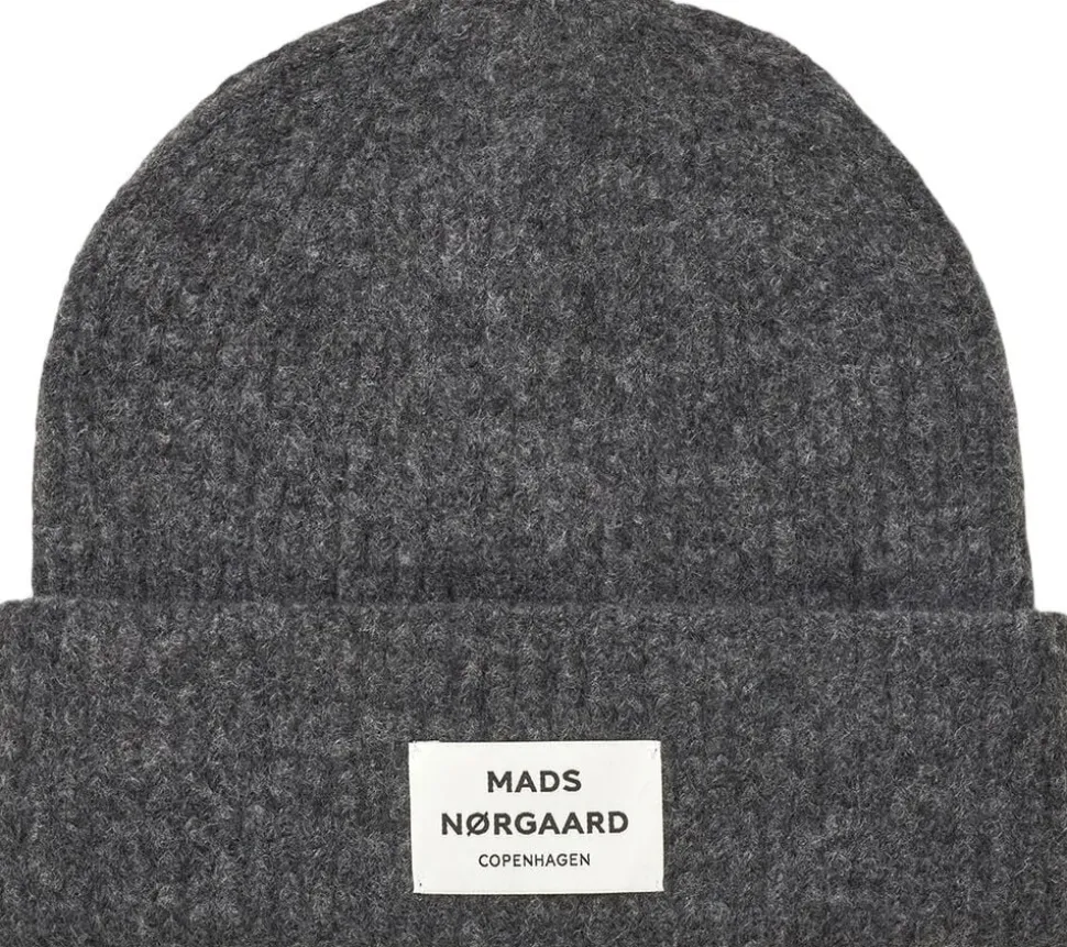 Blød, ribstrikket hue med bredt dobbelt-ombuk og påsyet logolabel.