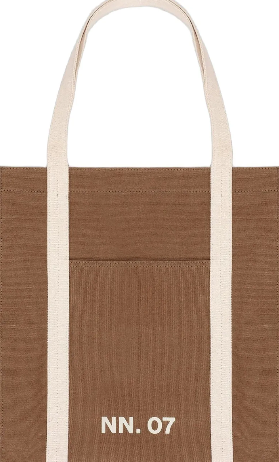 Tote taske lavet af økologisk bomuld og designet med et NN.07-logoprint og kontraststropper