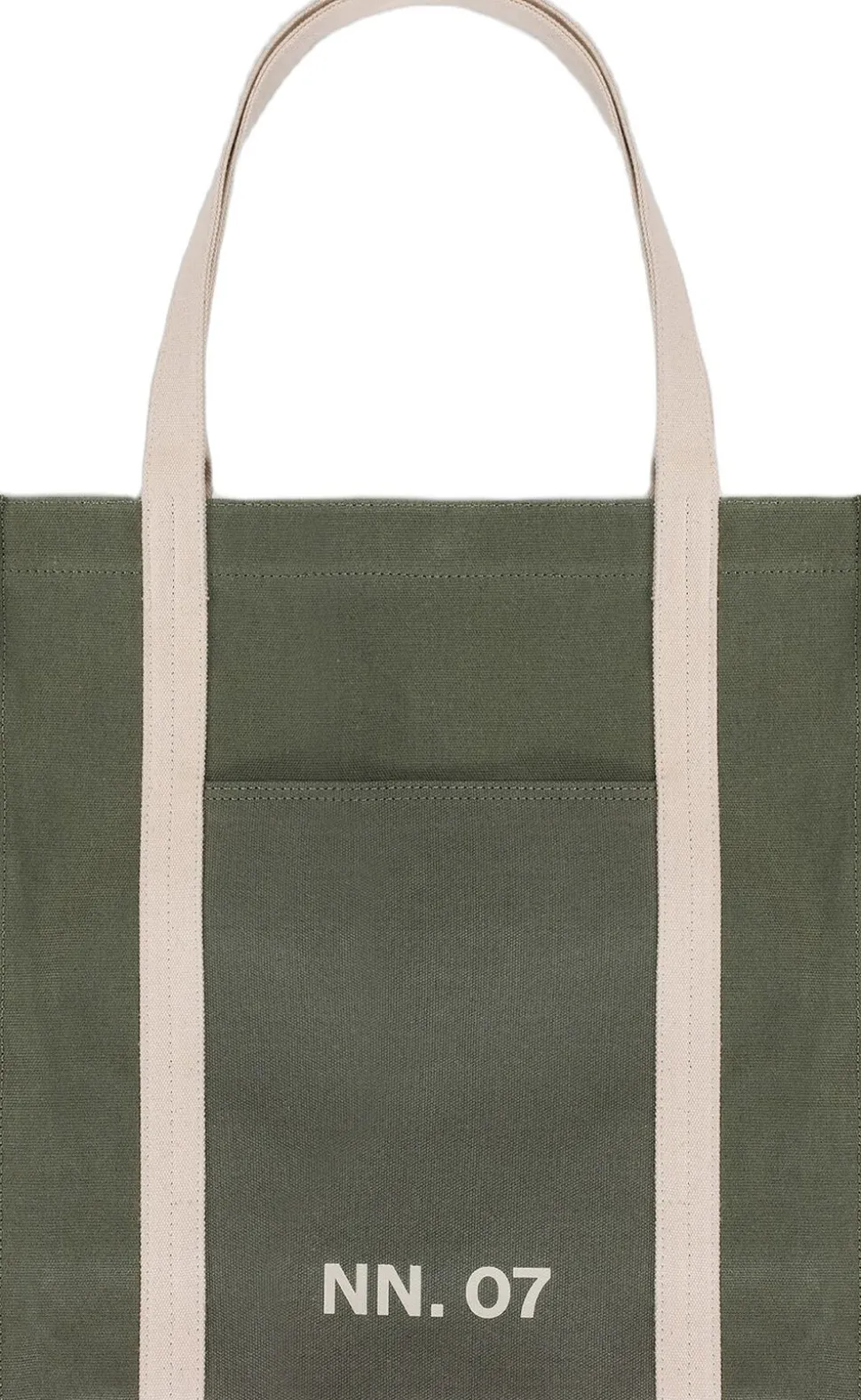 Tote taske lavet af økologisk bomuld og designet med et NN.07-logoprint og kontraststropper.
