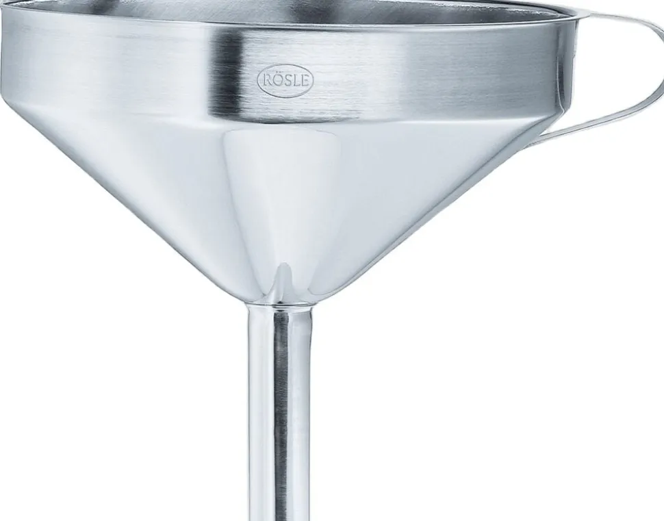 RÖSLE tragt med udtagelig si fremstillet i stærkt 18/10 rustfrit stål. Tåler opvaskemaskine. (R24098)