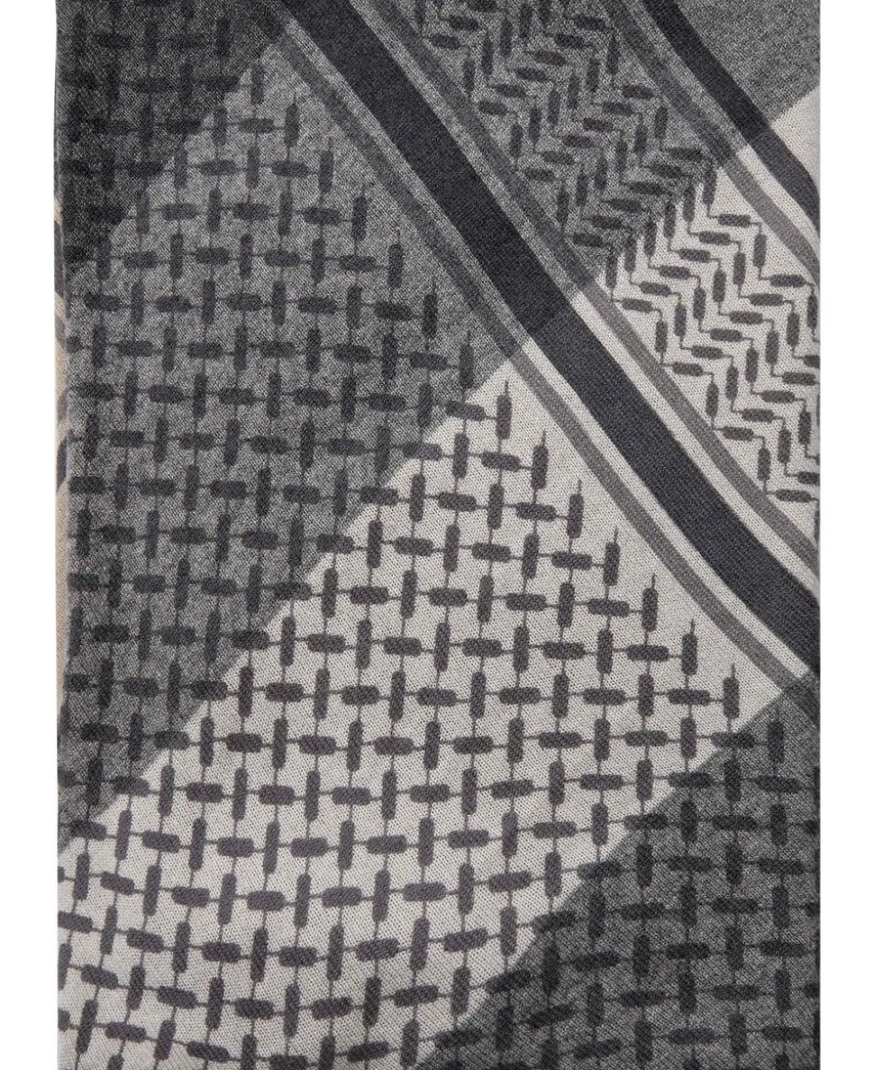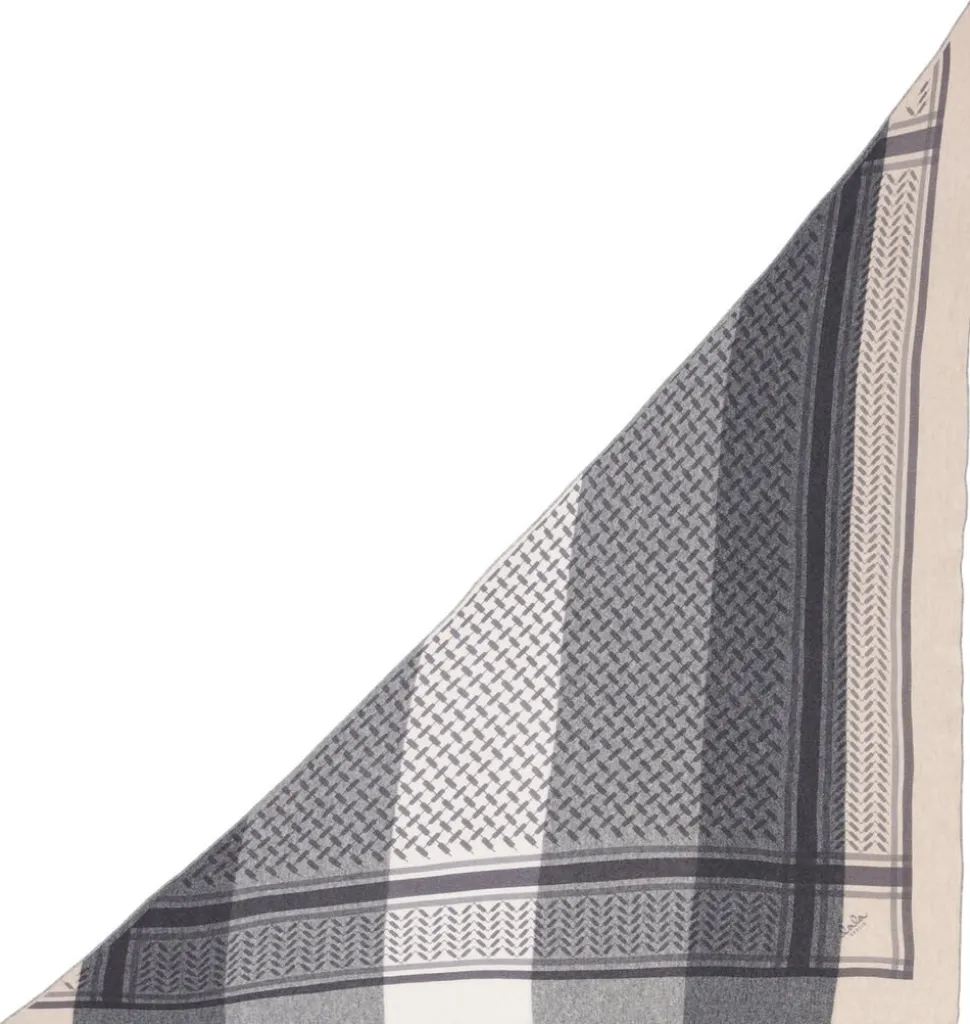 Et luksuriøst blødt, trekantformet cashmere tørklæde, med et klassisk sort Kufiya-print.