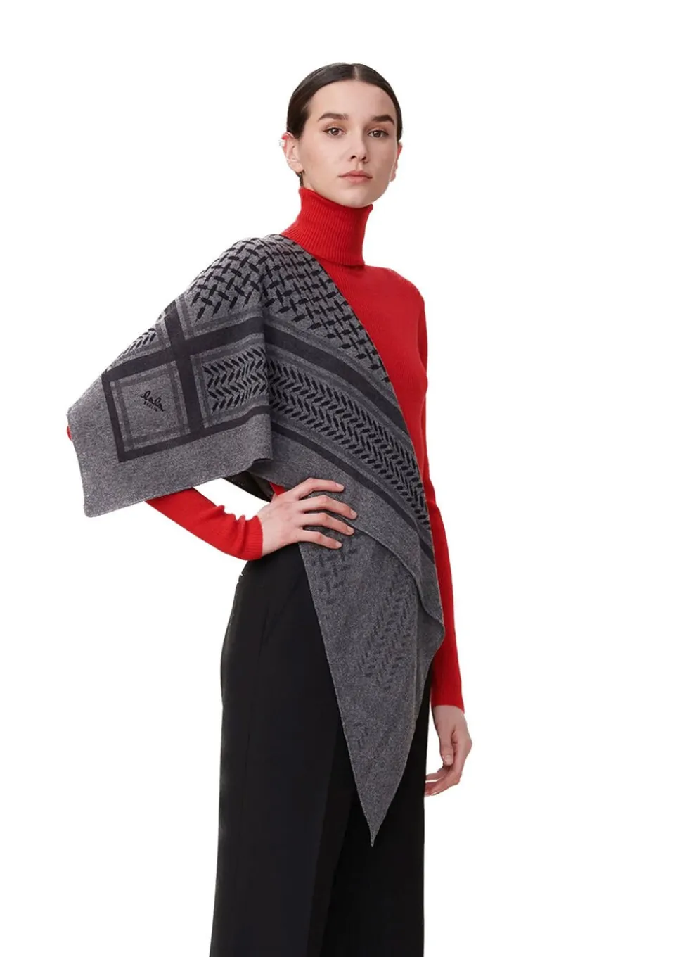 Et luksuriøst blødt, trekantformet cashmere tørklæde, med et klassisk sort Kufiya-print.