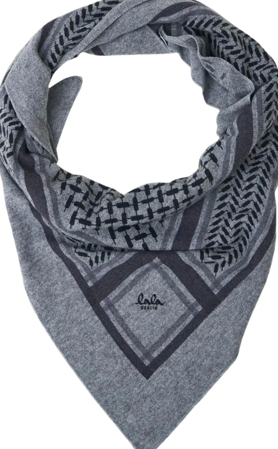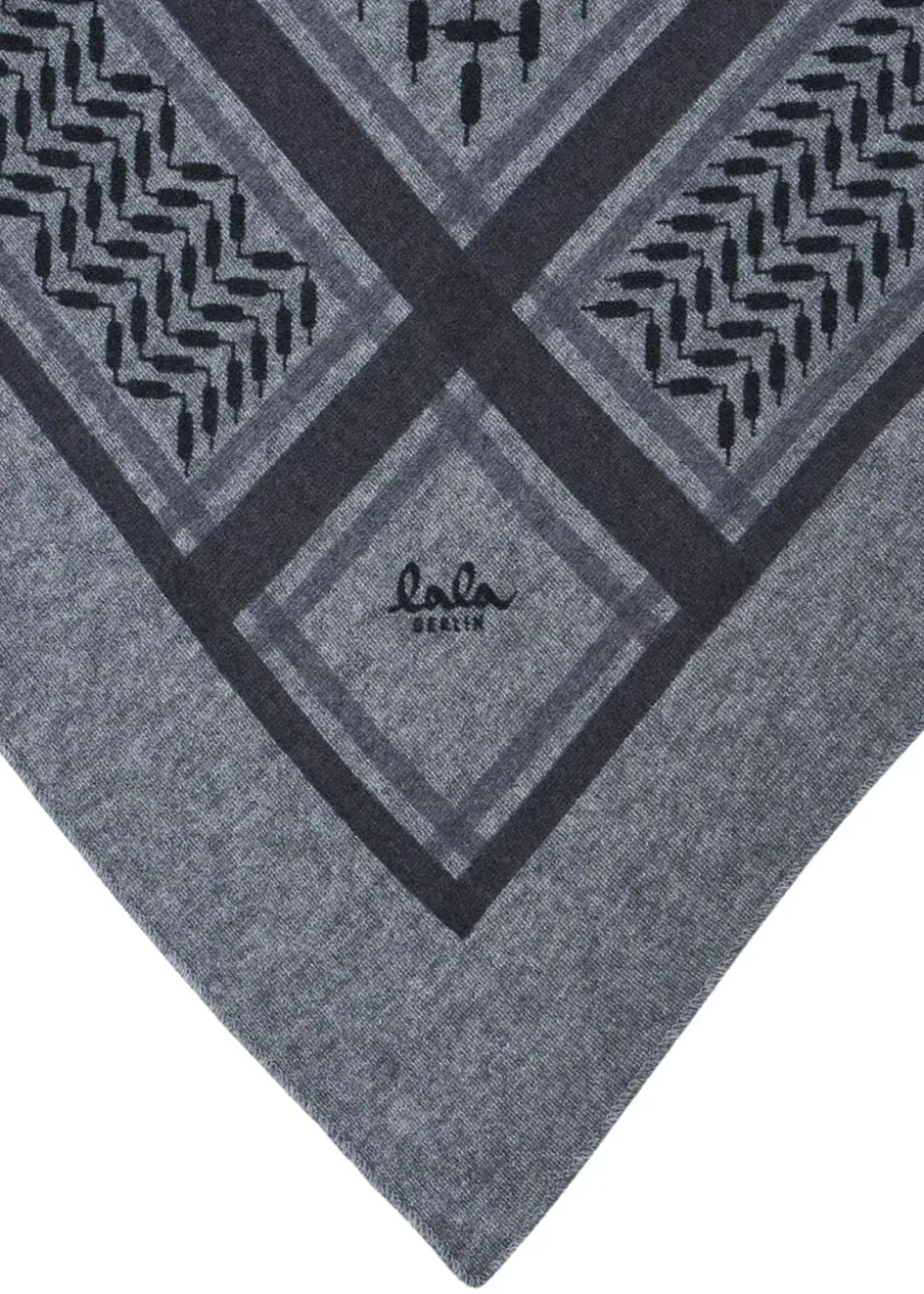 Et luksuriøst blødt, trekantformet cashmere tørklæde, med et klassisk sort Kufiya-print.