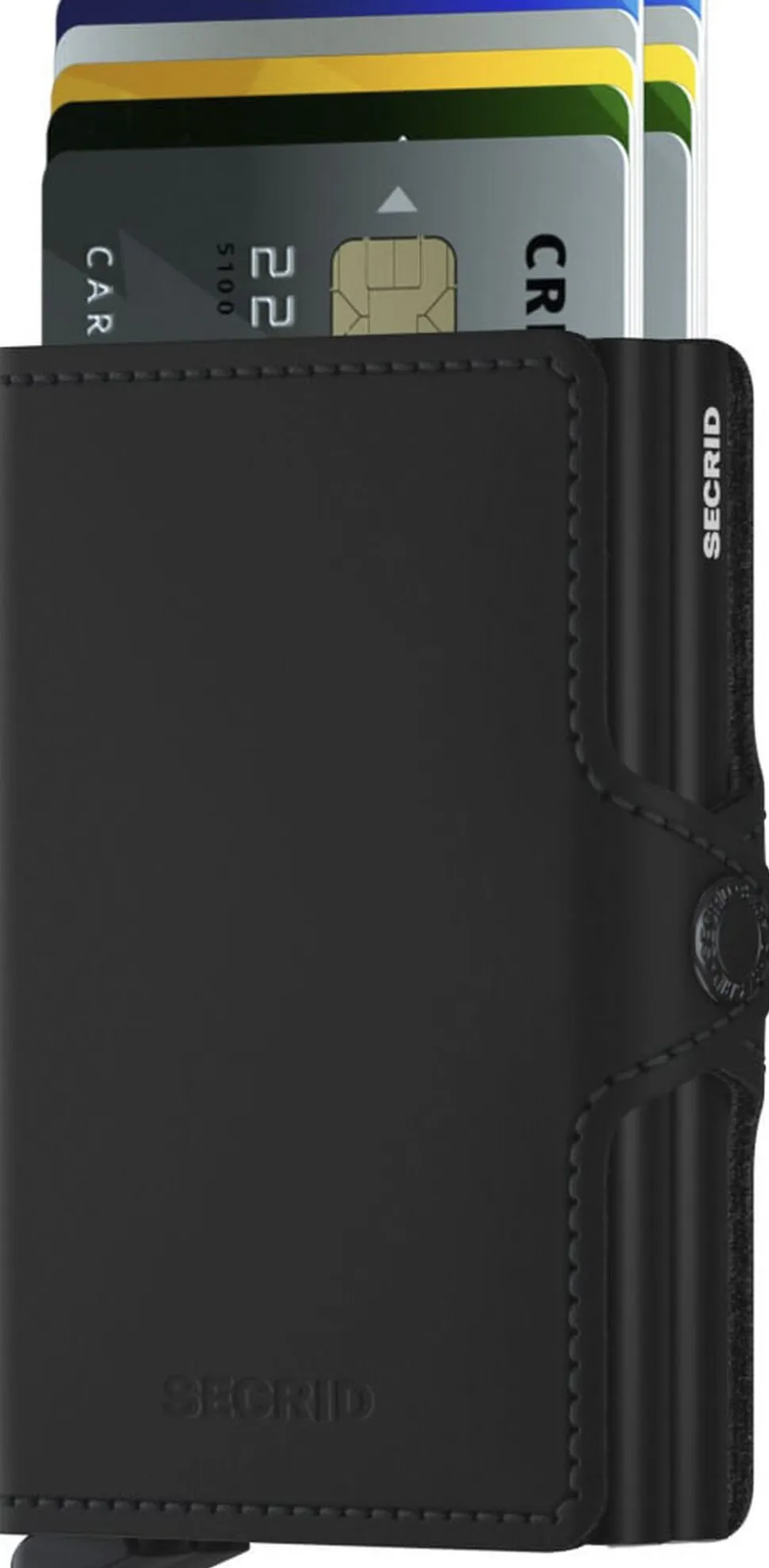 Med baggrund i Secrid Cardprotector er twinwalleten en pung med plads til dobbelt så mange kort, som miniwalleten, så her har du den perfekte pung, hvis du ejer lidt for mange kort, eller blot vil have en god opdeling mellem forretningskort og privatkort. Ud over plads til ti kort i Cardprotectorne har den også plads til nogle kort, sedler, bon’er og visitkort. Twinwalleten er perfekt til at bære i taske eller clutch og er med sin trykknapslukning uden risiko for at kortene falder ud. Secrid Cardprotector virker som en firewall i din pung. RFID/NFC kort er ikke sikkert opbevaret i din regulære pung. RFID (Radio Frequency Identification) eller NFC (Near Field Communication) kort har en chip og en antenne til trådløs kommunikation. Disse kort, som f.eks. transportpas, nye kredit kort og adgangskort, kan aktiveres, vælges og kopieres, på mange meters afstand, uden at du opdager det. Det sker ikke, når du opbevarer dine kort sikkert i Secrid’s Twinwallet. Pungen her er i Matte læder, som har fået en overflade coating, der afviser smus og vand, den kan nemt aftørres og ser efterfølgende ud som ny.