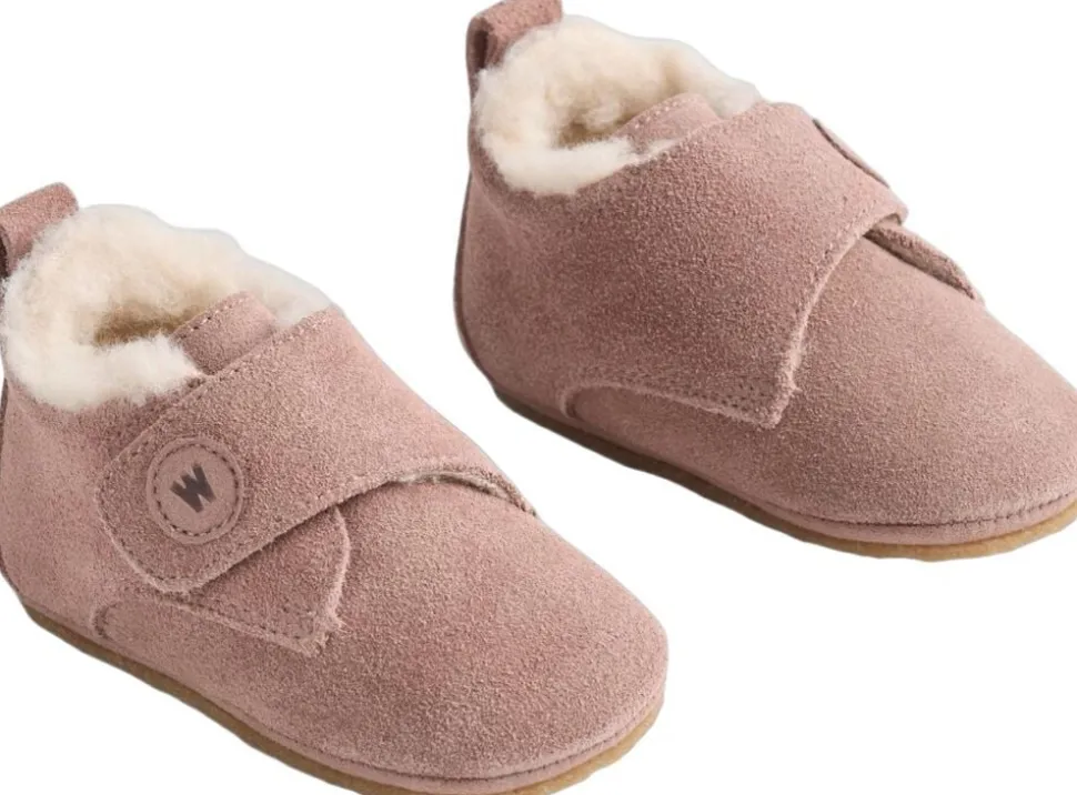 Varme og hyggelige hjemmesko med velcrolukning og uldfoer til din baby. – Uldfoer – Velcrolukning over vristen med logo – Læder bagkappe, der giver foden god stabilitet Wheats indendørssko er lavet af fleksible og behagelige materialer. Hjemmeskoene er nemme at tage på dit barn med en enkelt velcrolukning over vristen og læder bagkappe ved hælen. Disse sutsko er lavet i ruskind og læder fra LWG-garverier, der er åndbart og svedabsorberende, og derfor sikrer god komfort for dit barn. Denne sammensætning sørger for at holde dit barns fødder dejligt varme i de kolde efterårs- samt vintermåneder. Skoen har foer i uld, foruden udtagelig indlægssål, der er lavet af latex og beklædt med uld. Indlægssålen har trampolineffekt, hvilket gør, at underlaget ikke vil stødpåvirke, når dit barn bevæger sig rundt. Latex er et naturligt produkt, der er åndbart for dit barn, hvorfor skoen er perfekt i indendørs klima til leg og tumlen. Alt i alt en ideel sutsko til opstart i vuggestue, dagpleje eller blot leg i hjemmet. Anbefalet voksetillæg: 10-15 mm Indvendige mål: Str. 19 = 12,5 cm Str. 20 = 13,1 cm Str. 21 = 13,8 cm Str. 22 = 14,4 cm Str. 23 = 15,1 cm Str. 24 = 15,8 cm Str. 25 = 16,4 cm Str. 26 = 17,1 cm — Yder materiale: Ruskind samt læder fra LWG-garverier Foer: 50% Uld og 50% Bomuld Indlægssål: Blød latex indlægssål belagt med uld Yder sål: Naturlig crepe gummiVarme og koselige tøfler med borrelås og ullfôr til babyen din. – Ullfôr – Borrelåslukking over vristen med Wheat-logo – Skinnkappe ved hælen som gir foten god stabilitet Wheats innendørssko er laget av fleksible og komfortable materialer. Tøflene er enkle å ta på barnet med en enkelt borrelåslukking over vristen og en lærløkke ved hælen. Disse tøflene er laget av semsket skinn og skinn fra LWG-sertifiserte garverier med ullfôr for å holde barnets føtter varme i de kalde høst- og vintermånedene. De har uttakbare innleggssåler laget av lateks og dekket med ull. Latex er et naturprodukt som er pustende og fleksibelt med trampolineeffekt for behagelige steg. De er derfor perfekte for innendørs lek og tumbling. Yttersålen er laget av crepe gummi, som gir godt grep og er svært fleksibel. De går normalt i størrelser og har et fast grep om barnets føtter. Alt i alt en ideell tøffel for barnehage eller lek hjemme. Anbefalt veksttilskudd: 1-1,5 cm Indre mål: Str. 19 = 12,5 cm Str. 20 = 13,1 cm Str. 21 = 13,8 cm Str. 22 = 14,4 cm Str. 23 = 15,1 cm Str. 24 = 15,8 cm Str. 25 = 16,4 cm Str. 26 = 17,1 cm — Yttermateriale: Semsket skinn og skinn fra LWG garverier Fôr: 50% Ull og 50% Bomull Innersåle: Myk lateks-innersåle dekket med ull Yttersåle: Naturlig crepe gummi