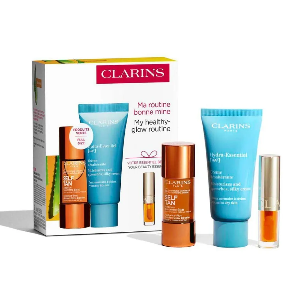 For at få en øjeblikkelig, solkysset glød har Clarins kombineret 2 produkter i dette sommersæt: 2-3 dråber Radiance-Plus Golden Glow Booster til at blande med Hydra-Essentiel Day Cream: en frisk, silkeagtig tekstur, der fugter og fylder huden, samtidig med at den får en sund glød takket være Radiance-Plus Golden Glow Booster.