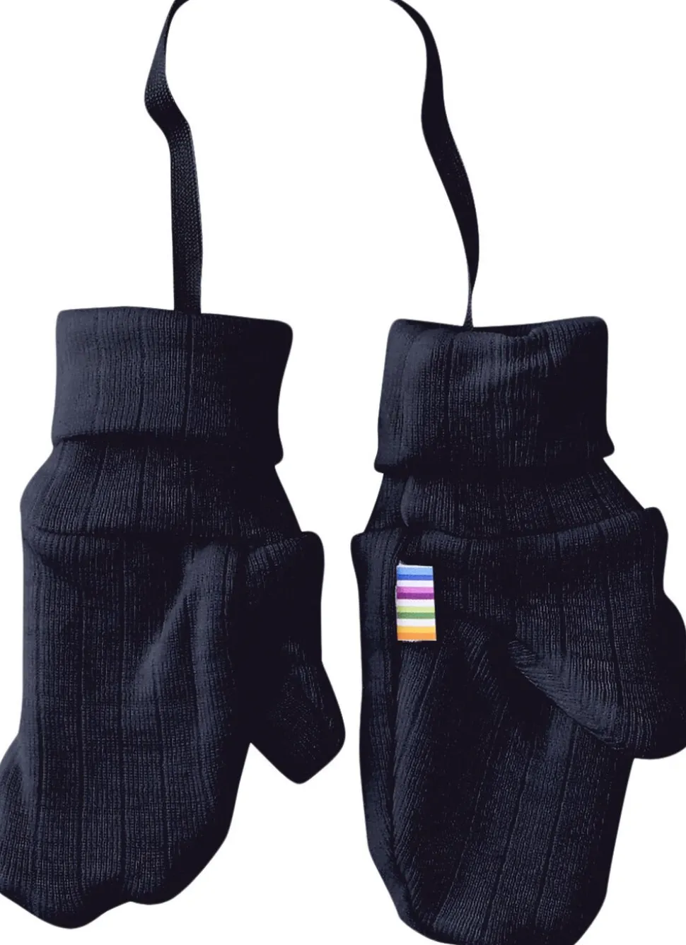 Luffer med tommelfinger. Dobbelt lags. Bred ribkant ved håndled så de ikke falder af. Hænger sammen med bånd så de ikke tabes. Blød, elastisk let uldkvalitet med lodret rille mønster som er behagelig at have på. Ensfarvet. Pure merino wool og Oeko-tex 100 mærket.