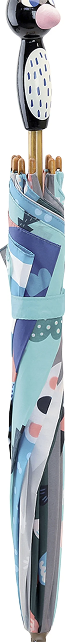 Paraply dekoreret med fine illustrationer af vintermotiver og pingviner, designet af den danske kunstner Michelle Carslund. Håndtaget er en sort pingvin. Paraplyen er produceret i Frankring.