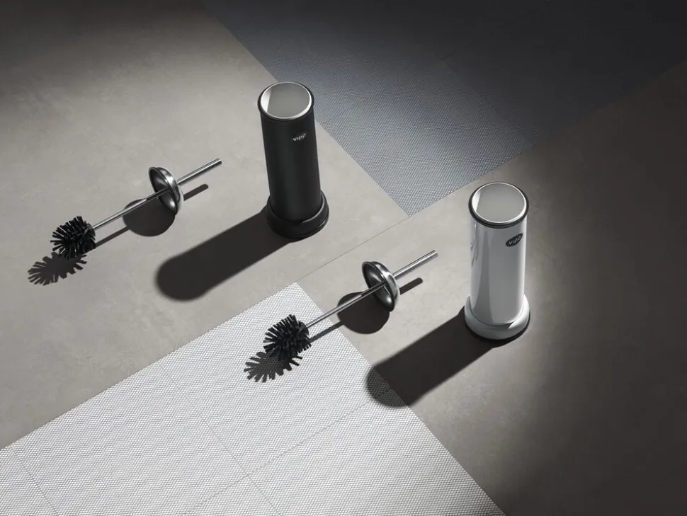 Vipp toiletbørsten er en del af Vipps serie af produkter til badeværelse. Denne toiletbørste pynter på badeværelset. En gummiring i toppen sikrer at børsten lukker tæt, mens ekstra tyngde i bunden sikrer god stabilitet. Toiletbørsten er udstyret med et udskifteligt børstehoved og inderrør.