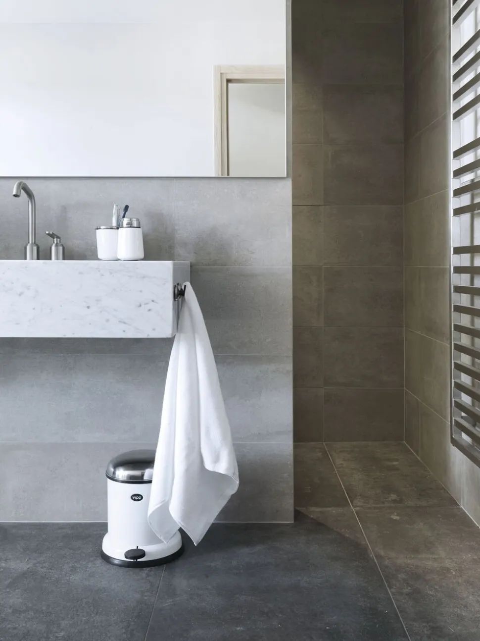 Vipp14 pedalspanden 8 l. er udstyret med et låg af rustfrit stål, en dæmpemekanisme, som får låget til at lukke i en blød og lydløs bevægelse, samt en gummiring, der garanterer lufttæthed. Kroppen er fremstillet i pulverlakeret stål og skjuler den udtagelige inderspand i galvaniseret stål. En gummiring i bunden sørger for at sarte overflader skånes.