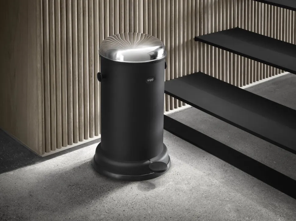 Vipp15 pedalspanden 14 l. er udstyret med et låg af rustfrit stål, en dæmpemekanisme, som får låget til at lukke i en blød og lydløs bevægelse, samt en gummiring, der garanterer lufttæthed. Kroppen er fremstillet i pulverlakeret stål og skjuler den udtagelige inderspand i galvaniseret stål. En gummiring i bunden sørger for at sarte overflader skånes.